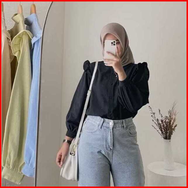 Yurim Blouse Ruffle - Atasan Wanita - Kemeja Basic Lengan Panjang