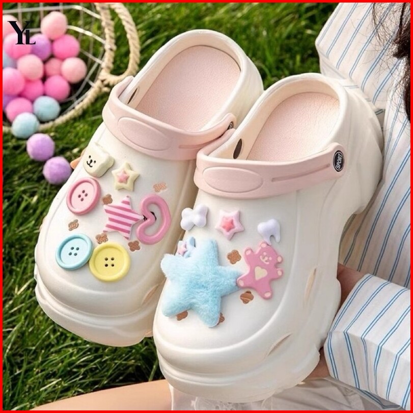 Sandal Baim Wanita Korea Style Karet Tebal Anti-slip Sandal Kodok Wedges Wanita Sandal Fuji Kekinian