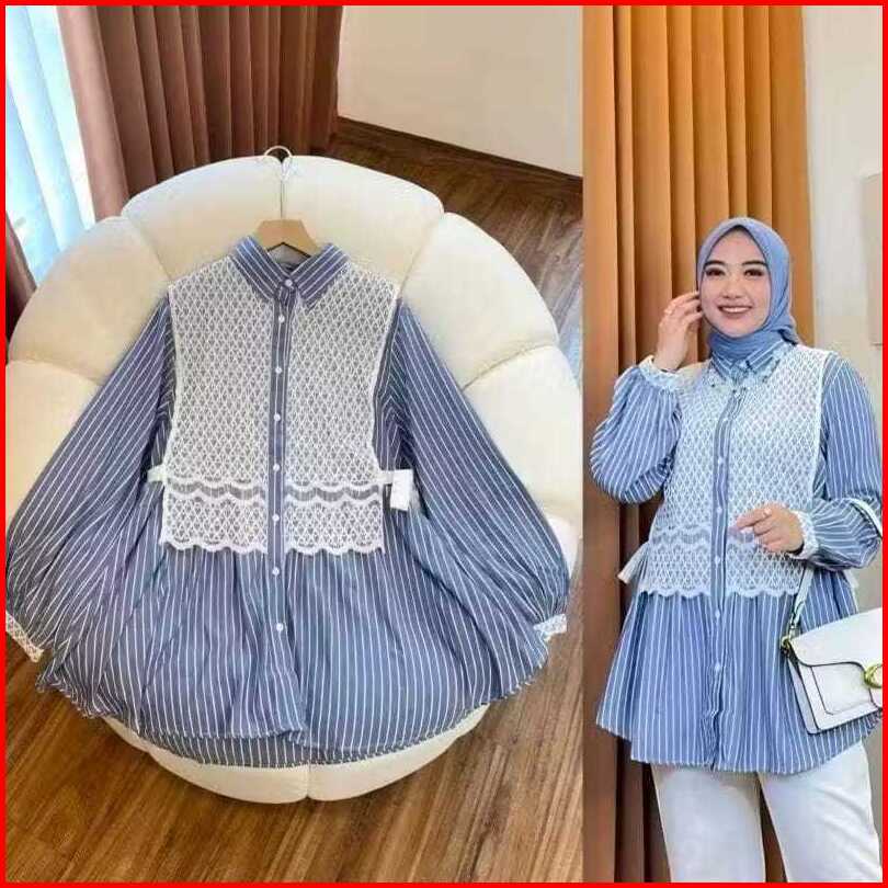 Terlaris Baju Atasan Kemeja Wanita Katun Garis-garis