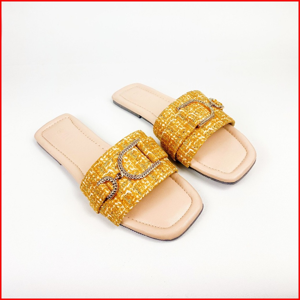 Galia Karin Sandal Wanita Flat Slop Rajut Platform 1 Cm Slip On