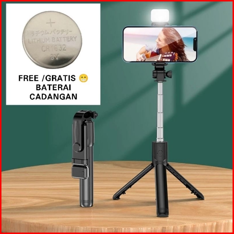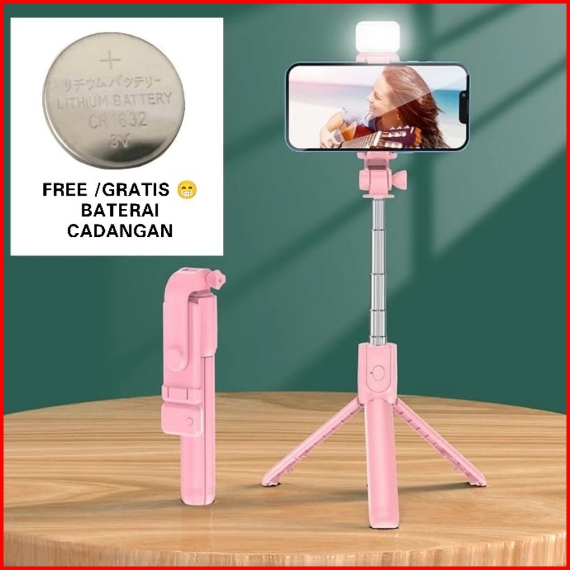 Tripod Tongsis Bluetooth 4 In 1 Flash Light Tripod Bluetooth Selfie Stick Led Flash Selfi Stik Tongsis 4in1 3in1 A