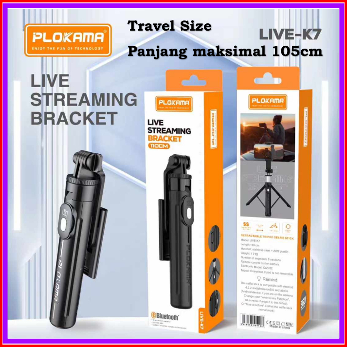 Plokama K7 Tongsis Tripod 3 In 1 105cm 1 Meter Selfie Stick Remote Bluetooth Portable Travel Size For Hp Handphone Smart