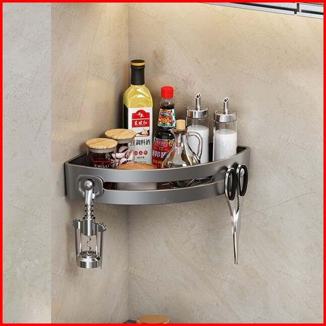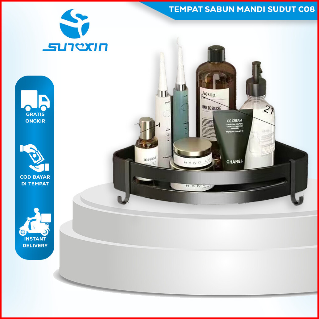 Sunxin Rak Kamar Mandi Plastik G08 Tempel Tanpa Paku Rak Sudut Bumbu Dapur Dinding Tempat Sabun Mandi