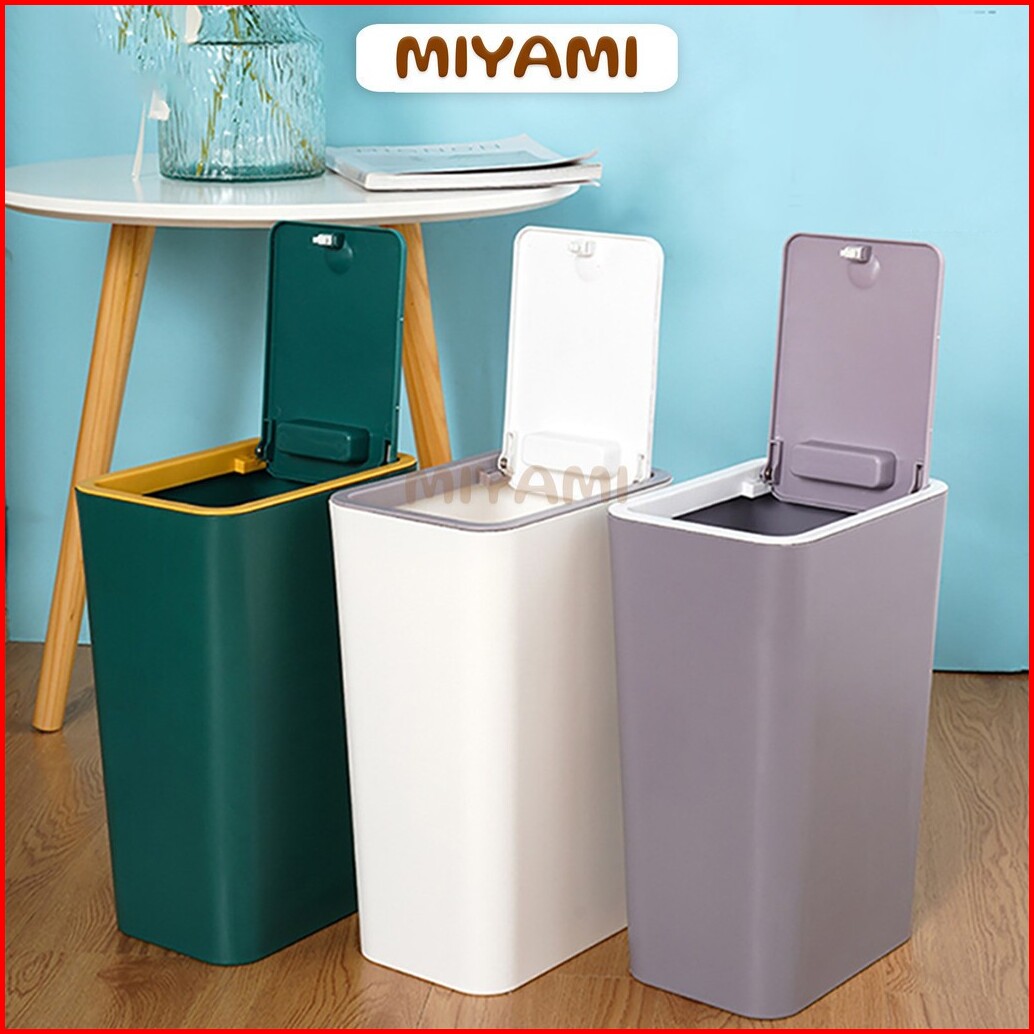 Tempat Sampah Minimalis Bentuk Persegi Kapasitas 10 Liter Tong Sampah Plastik Otomatis - Mi