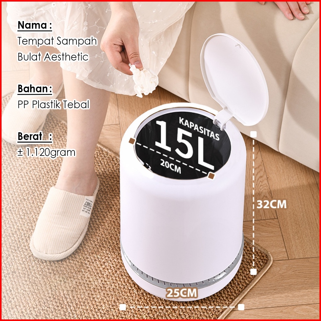 Tempat Sampah Bulat Tutup Popup Sekali Tekan Aesthetic Tong Plastik Trash Kantor Dapur Kamar Lb-f01b