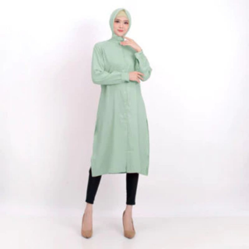 Kemeja Kerja Tunik Wanita Kancing Full Hidup Polos Bahan Toyobo (Mecca Tunik)