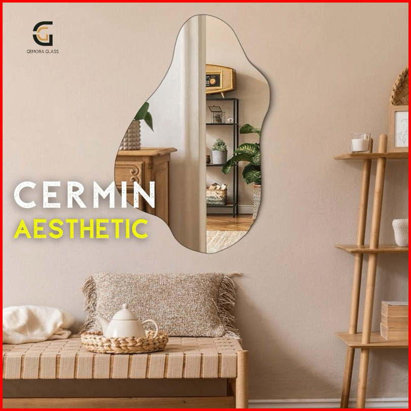 Cermin Aesthetic Dinding 60cm X 35cm Free Packing Kayu Cermin Dinding Cermin Aesthetic Kaca Aesthetic