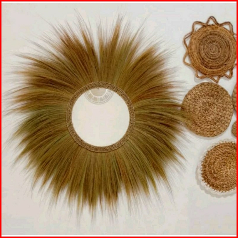 Cermin Rayung Cermin Pampas Aesthetic Hiasan Dinding Kaca Dinding Rustic