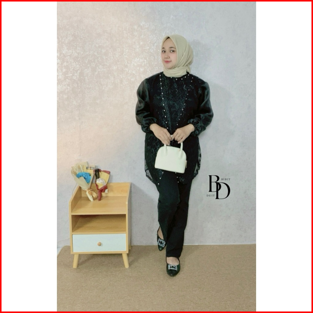 Outer Cardigan Tunik Brukat Jumbo Ld 120 Brokat Organza Full Payet Kondangan Baju Raya Wisuda