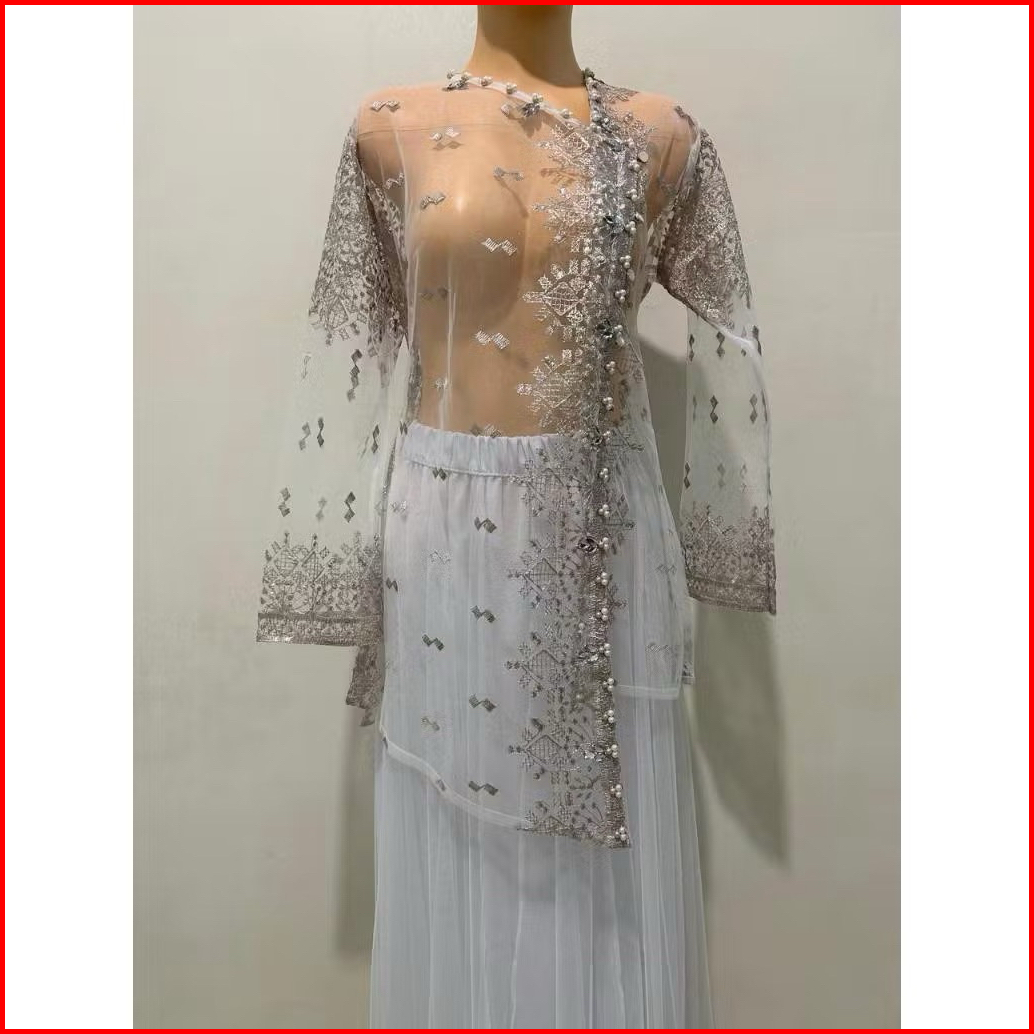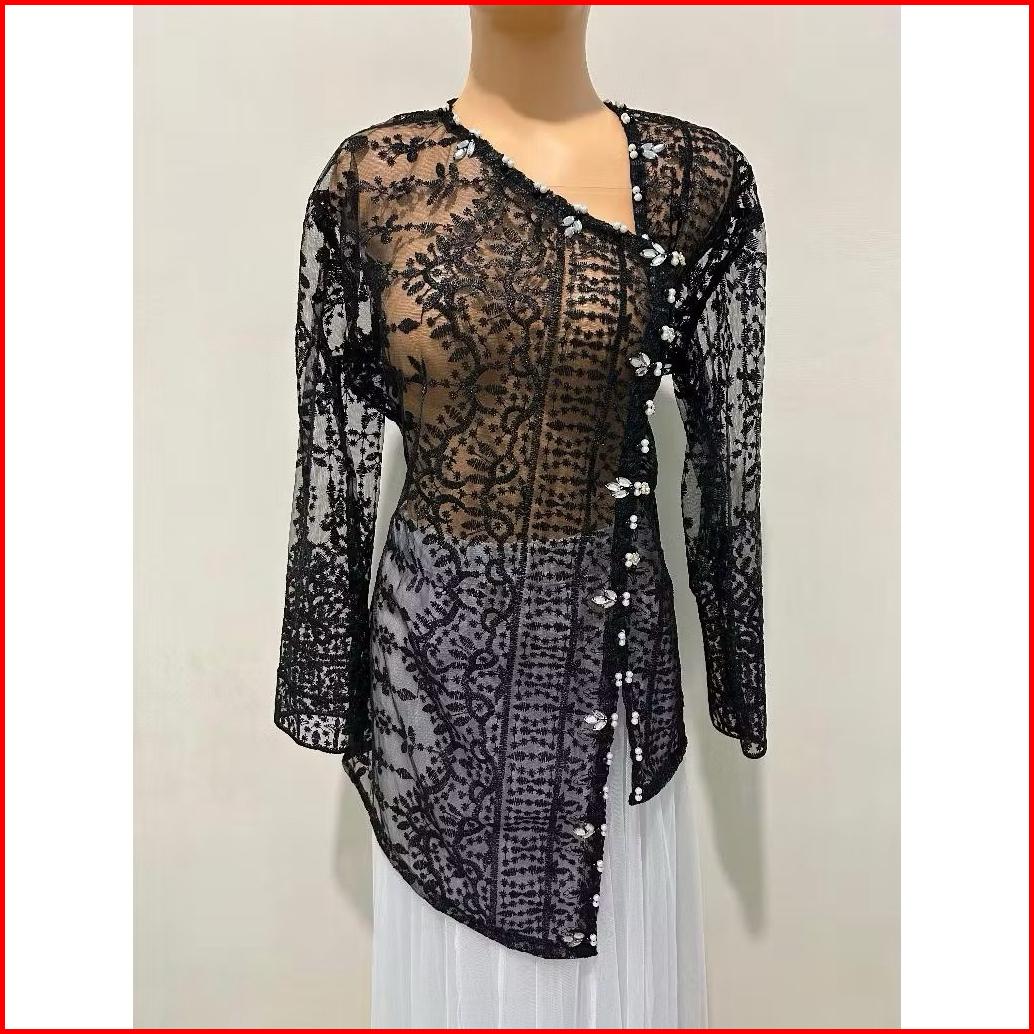 Outer Brukat Janggan Modern Aksen Silang Tunik Brukat Wanita Tali Samping Full Kancing Payet Mutiara Diamond Baju Atasan