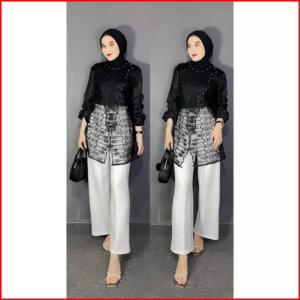 Zize Outer Brokat Organza Full Payet Tunik Brukat Baju Hari Raya Kondangan Wisudaan Atau Bridesmaids