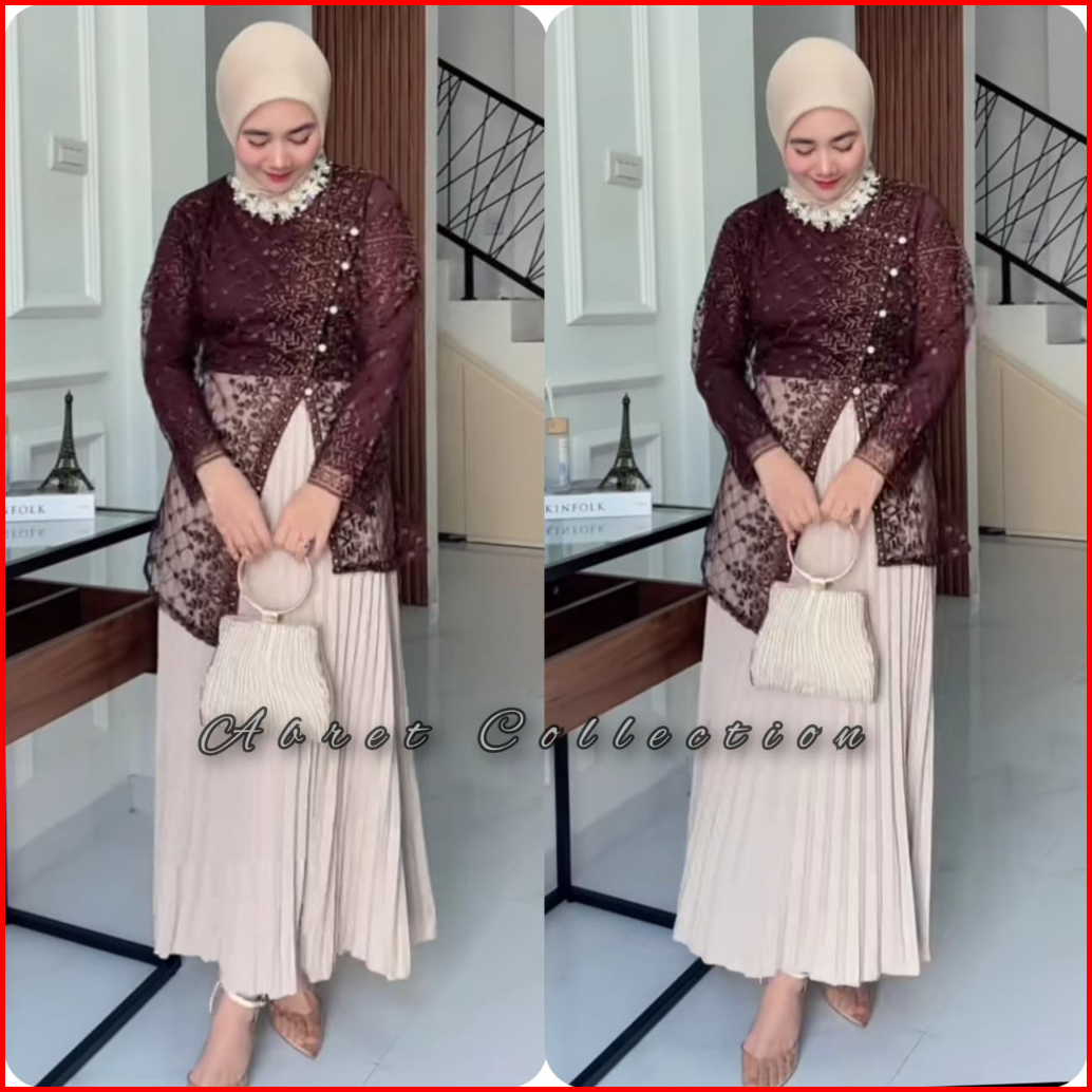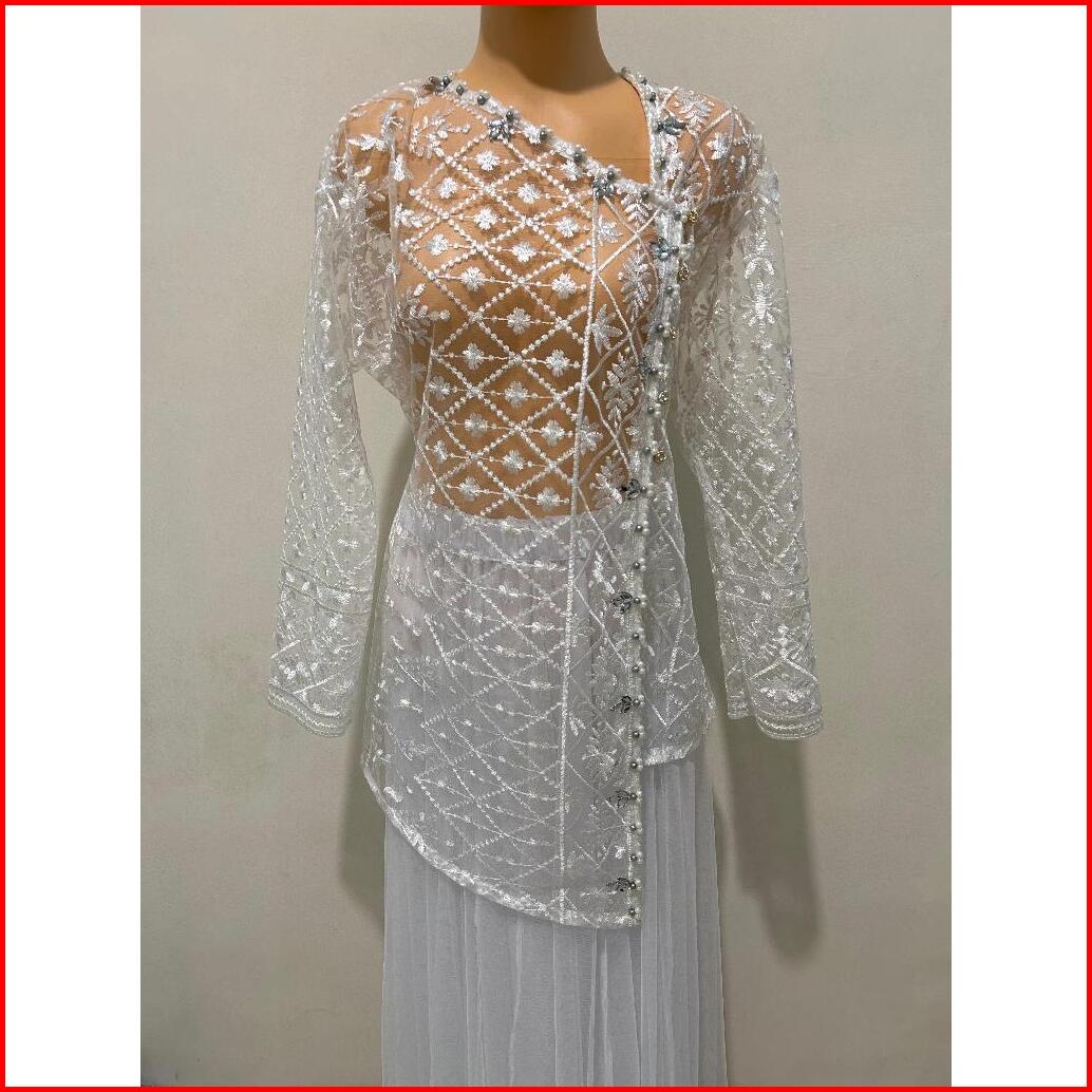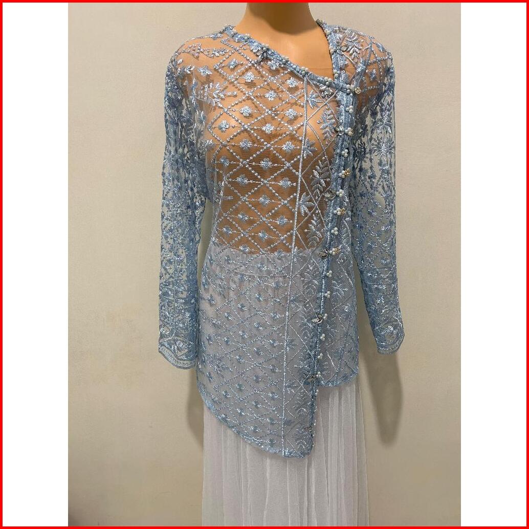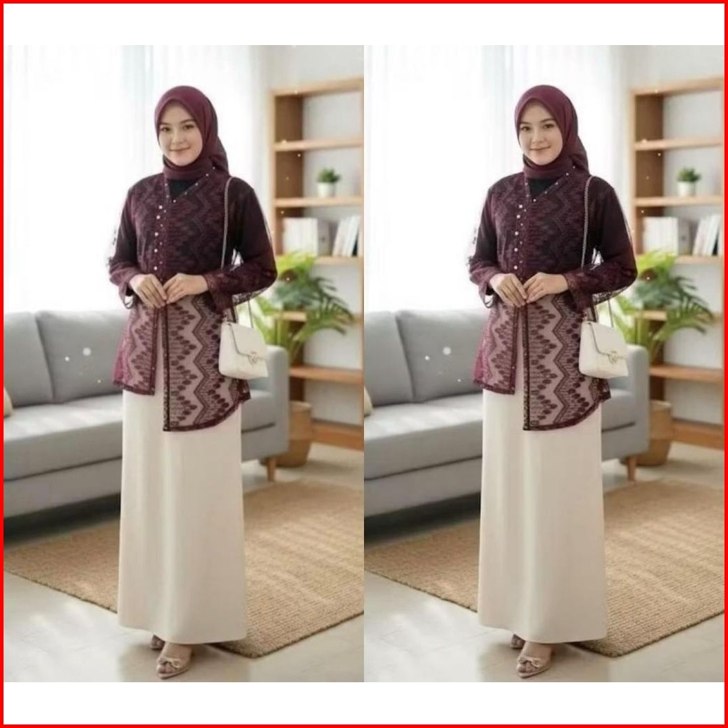 Outer Brukat Janggan Modern Aksen Silang Tunik Brukat Wanita Tali Samping Full Kancing Payet Mutiara Diamond Baju Atasan
