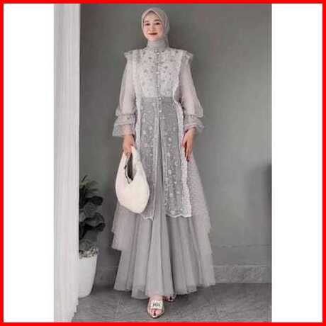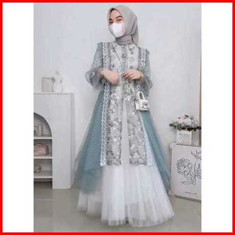 Sarah Outer Cardigan Tile Bordir Mix Brukat - Outer Cardigan Fashion Muslim Kekinian Korean Style
