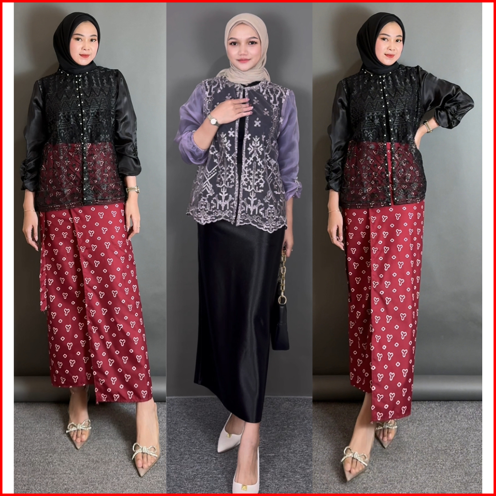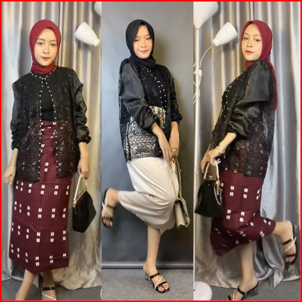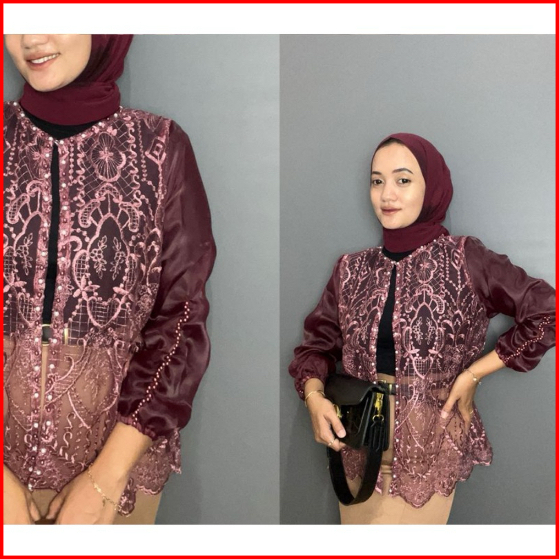 Lily Outer Crop Brukat Organza Cardigan Brokat Sapto Baju Kondangan Lebaran Motif Random