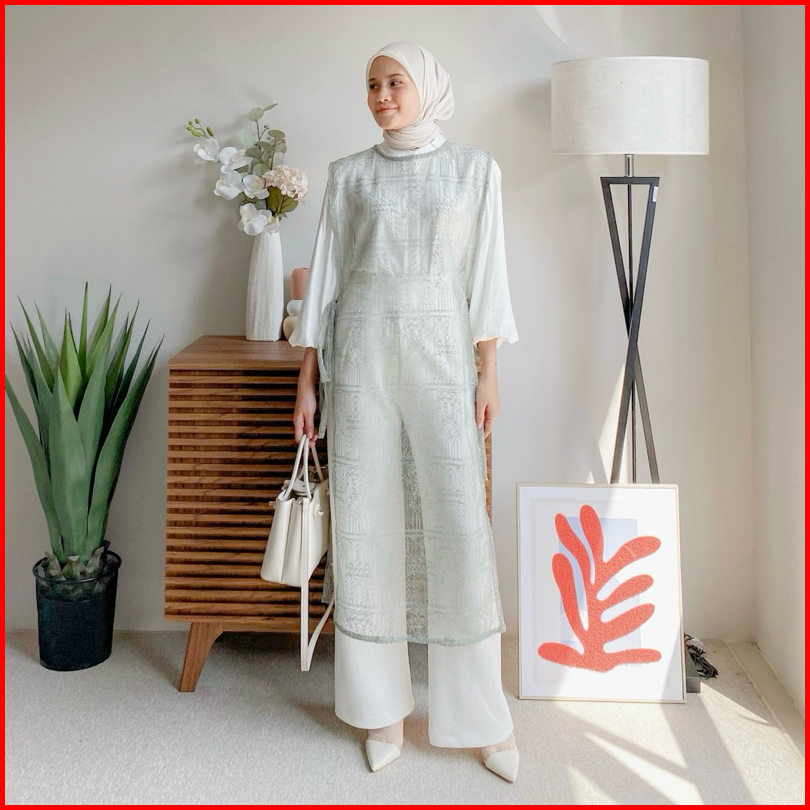 Outer Long Vest Brukat Chantily Outer Brukat Wanita Terbaru