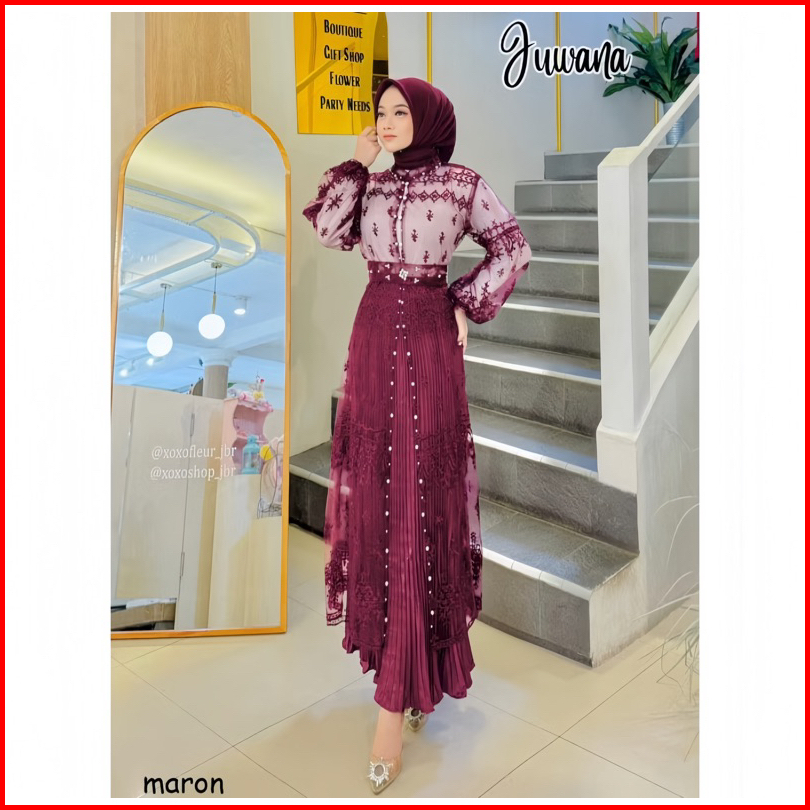 Outer Juwana Brokat Sapto Terbaru Lengan Balon Full Payet Free Belt Outer Saja