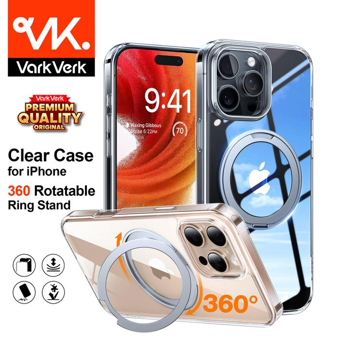 [Star] VarkVerk 003 Clear Case for iPhone with 360 Rotatable Ring Stand, Heavy Duty Military Grade Cover with Ring Kicks