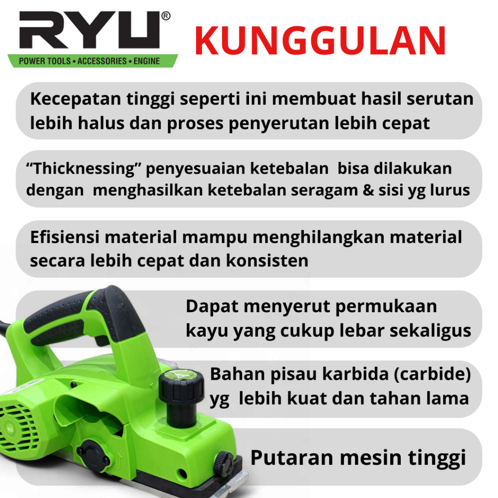 RYU Mesin Serut Kayu Planer Pasah Ketam Sugu RPL 82-3A RPL 82-4A Penghalus Kayu Triplek Planner ORI