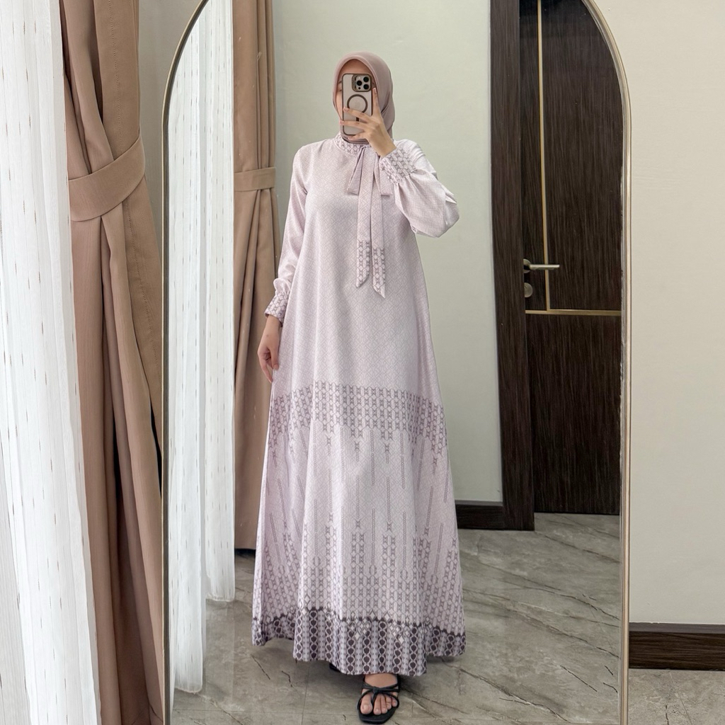 Mauza Dress - Dress Motif Silk Printing Muslim Wanita