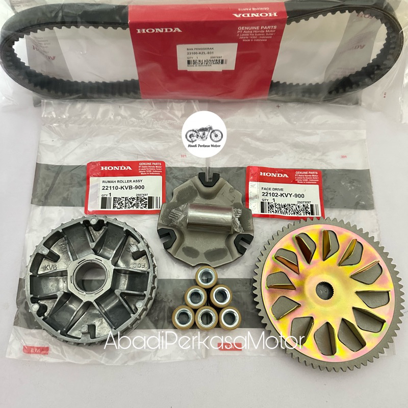 Paket CVT Van Belt + Rumah Roller Assy Set + Kipas Rumah Roller Honda Beat Fi Starter Kasar 2013-2014