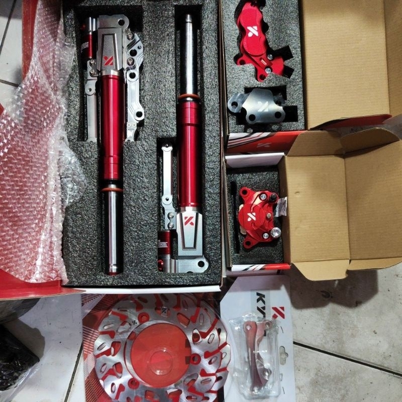 kaliper set dpn blkg plus shock sff-07+breket sama piringan set d/b dpn 245mm blkg standar ktc kytaco buat nmax old puny