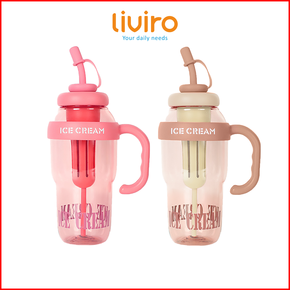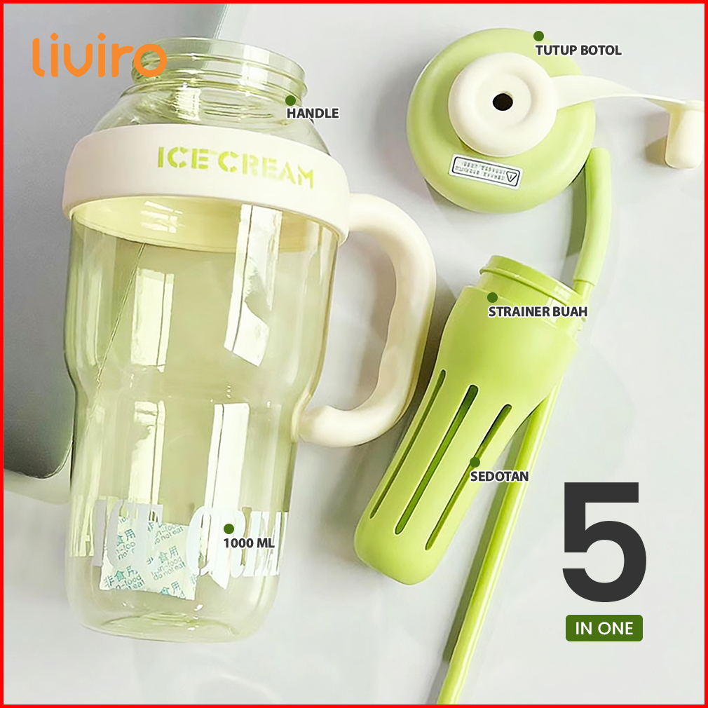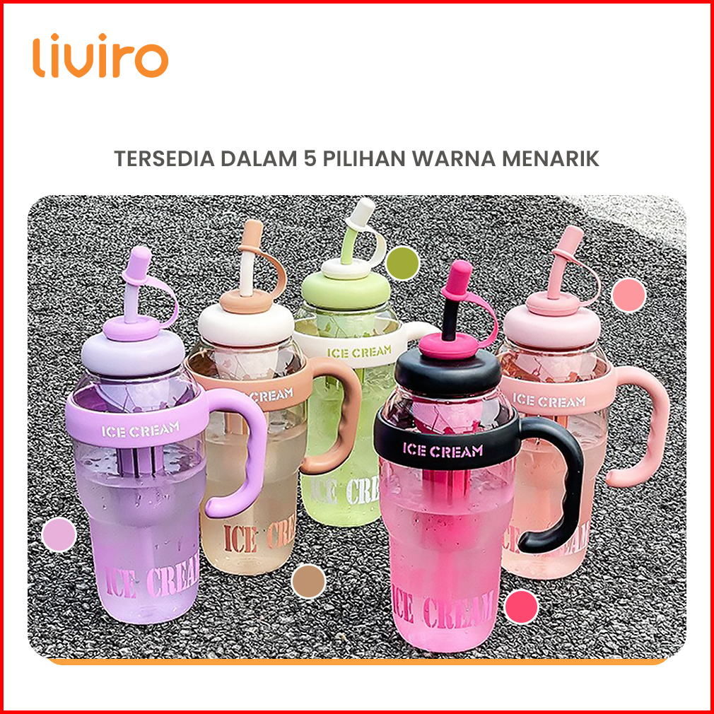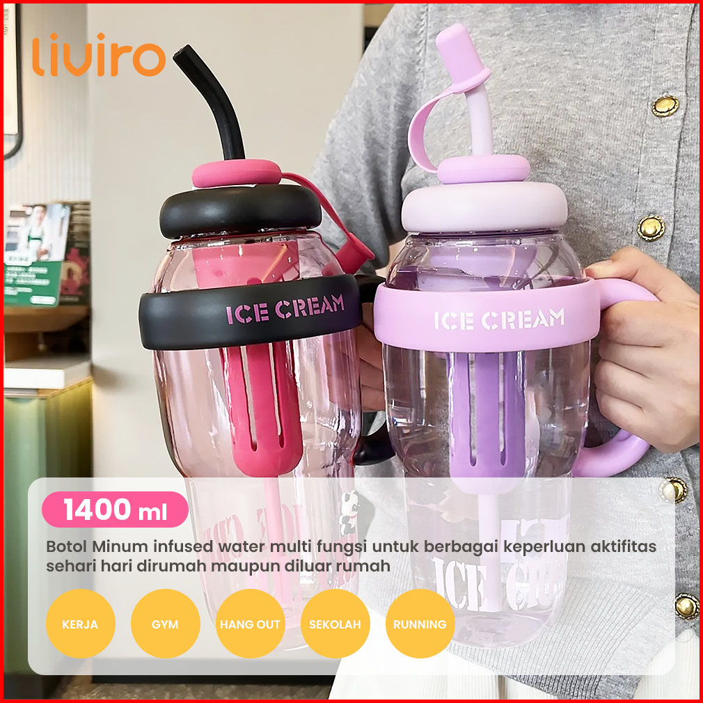 Liviro Botol Minum Air Jumbo Ice Cream Tumbler Dengan Sedotan Aesthetic 1400ml Anak Lucu Premium