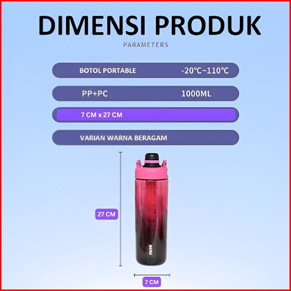 Botol Minum Infused Water 1000ml Dengan Gagang Botol Minum Gradasi Aestethic Botol Minum Transparan Snow