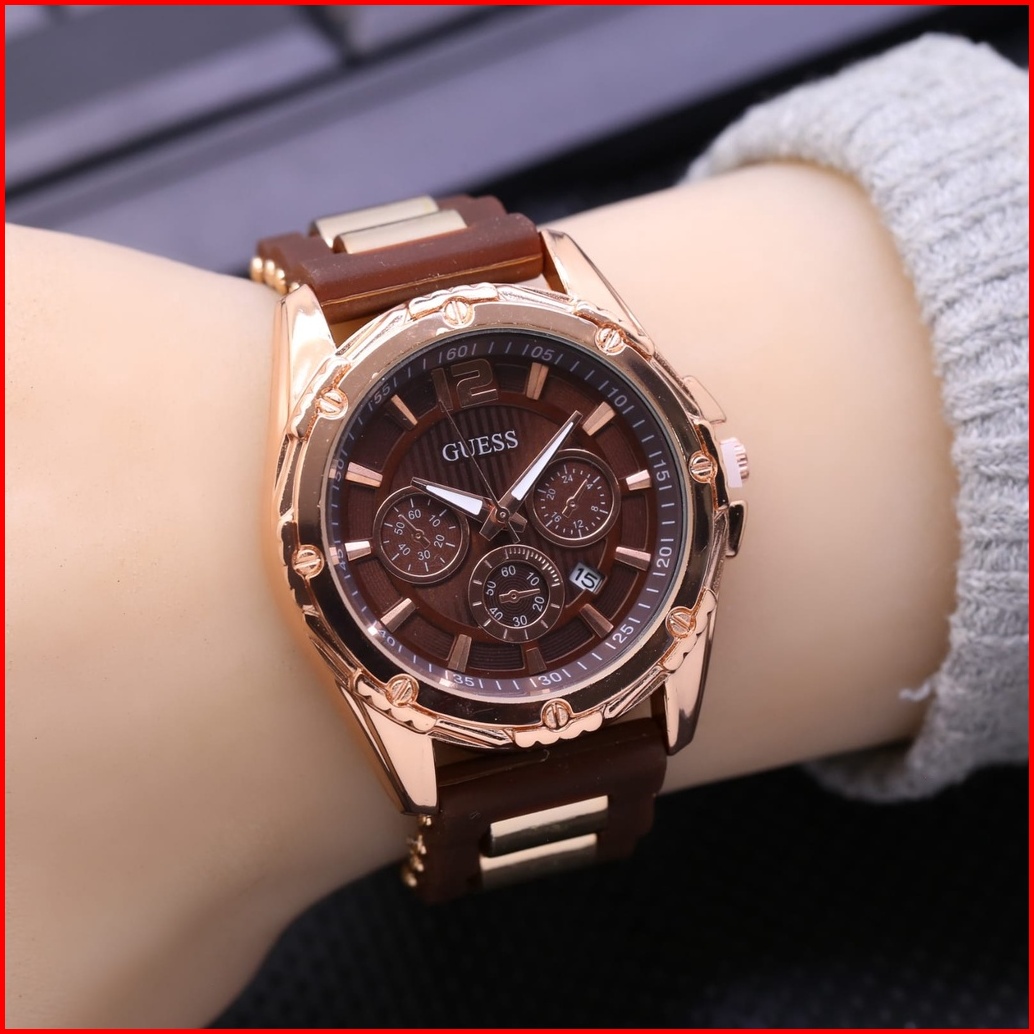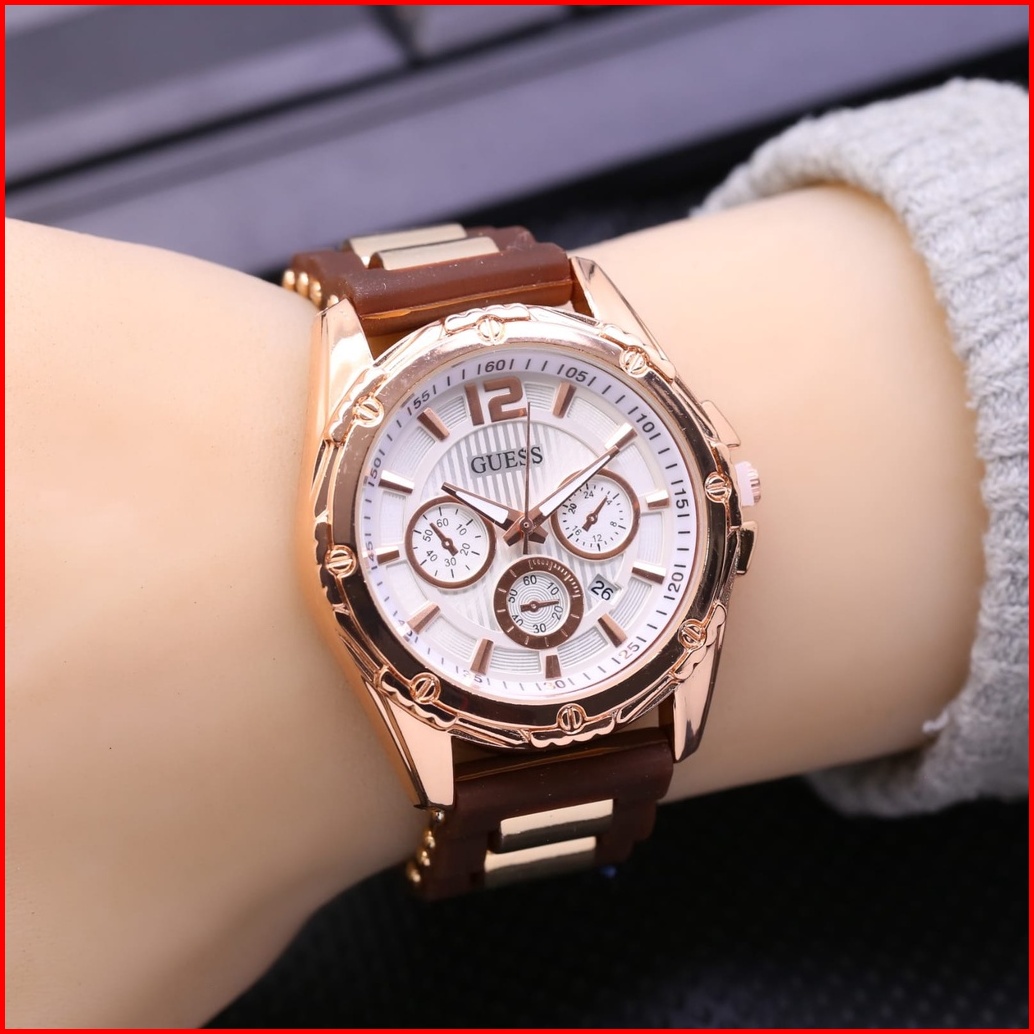Jam Tangan Premium Wanita Fashion Cewek Model Chrono Strap Rubber Arloji Cewek Mewah