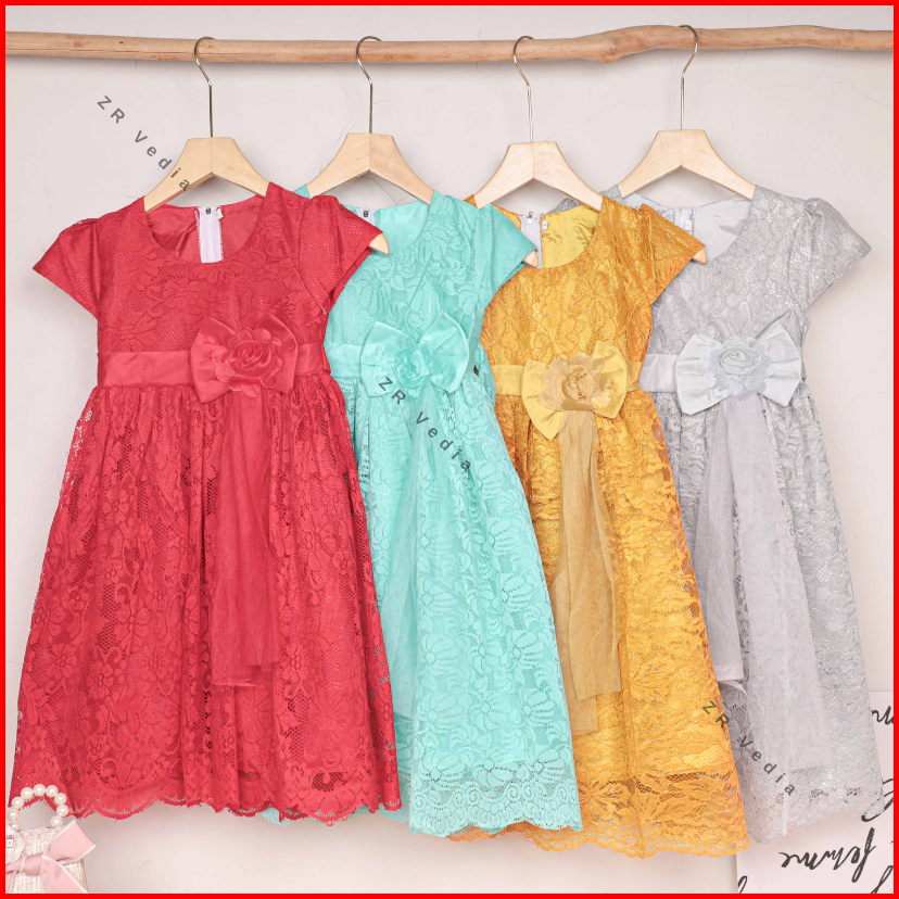 Gaun Pesta Size 3-12 Tahun Ekspor Quality Premium Brukat Baju Anak Perempuan Dress Polos Natal Dres
