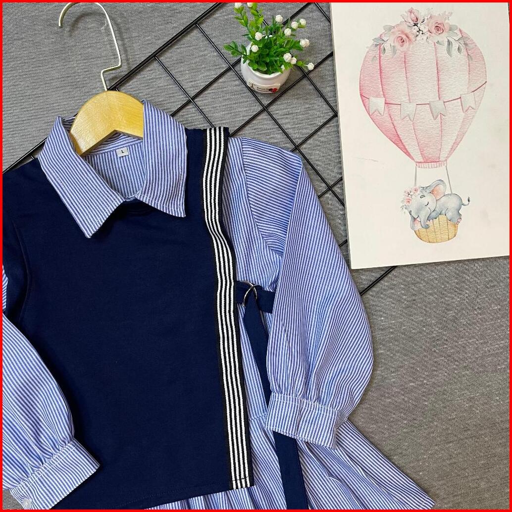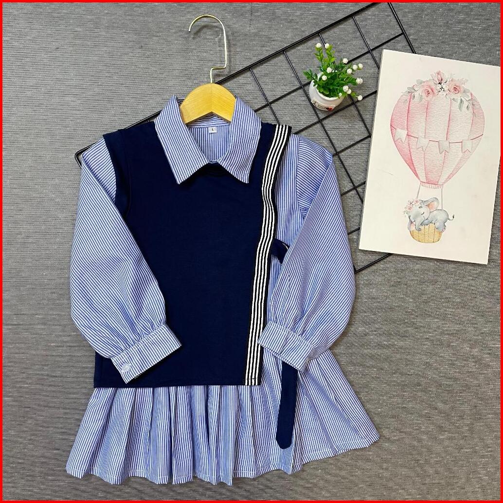 Dress Anak Perempuan Filobee Motif Salur Rompi Navy Bisa Lepas