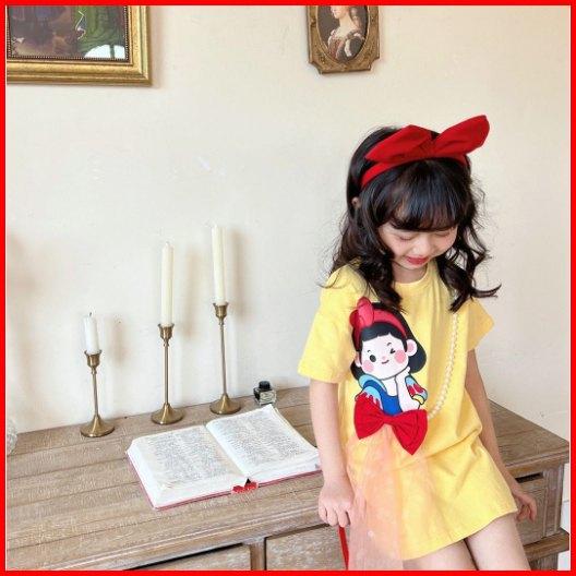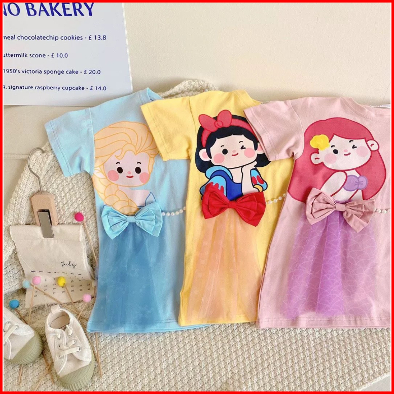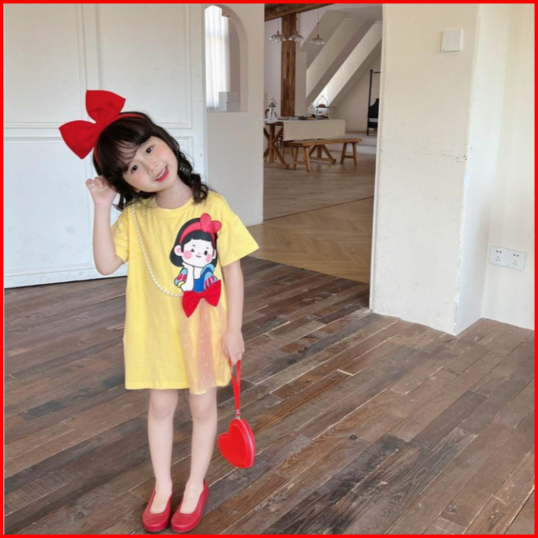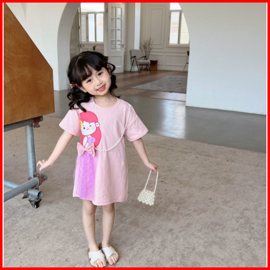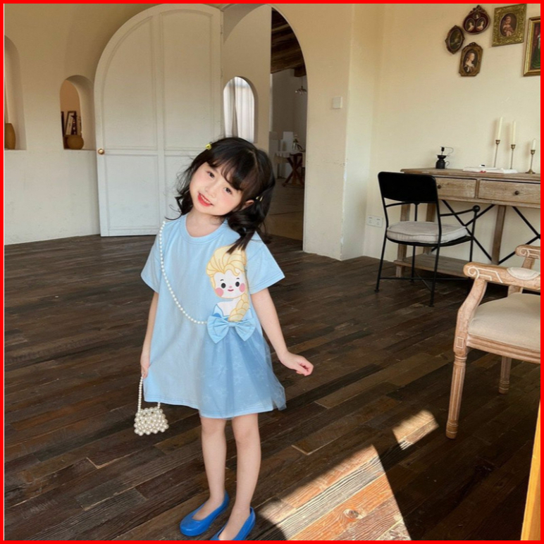 Rsb Dr548 Baju Gaun Motif Pita Kartun Anak Perempuan Lengan Pendek Jala Mutiara Fashion