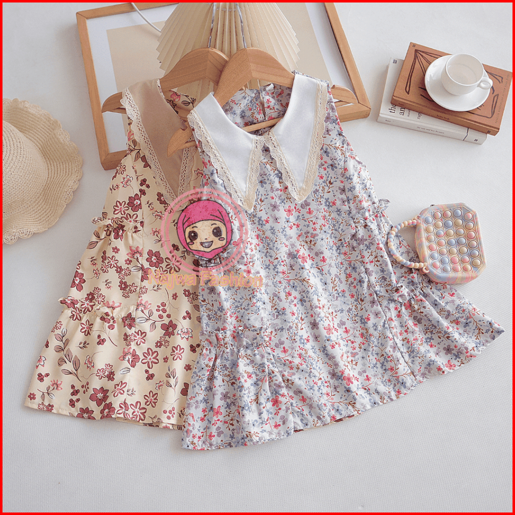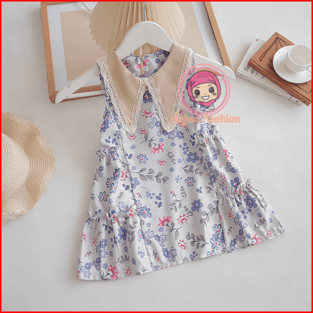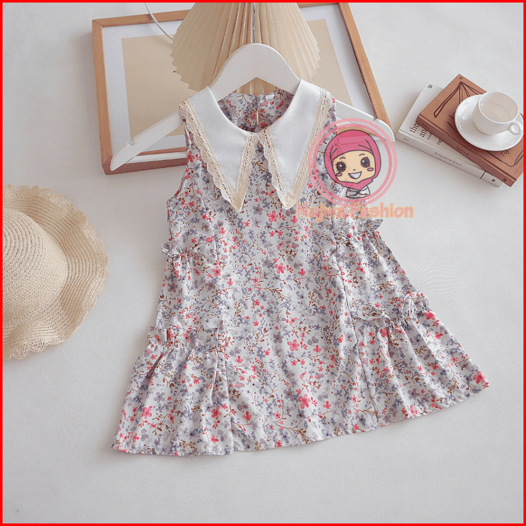 Najwa - Dress Anak Miyuko Motif Flora Terlaris Fashion Dress Anak Cewek Model Kerah Renda Terbaru