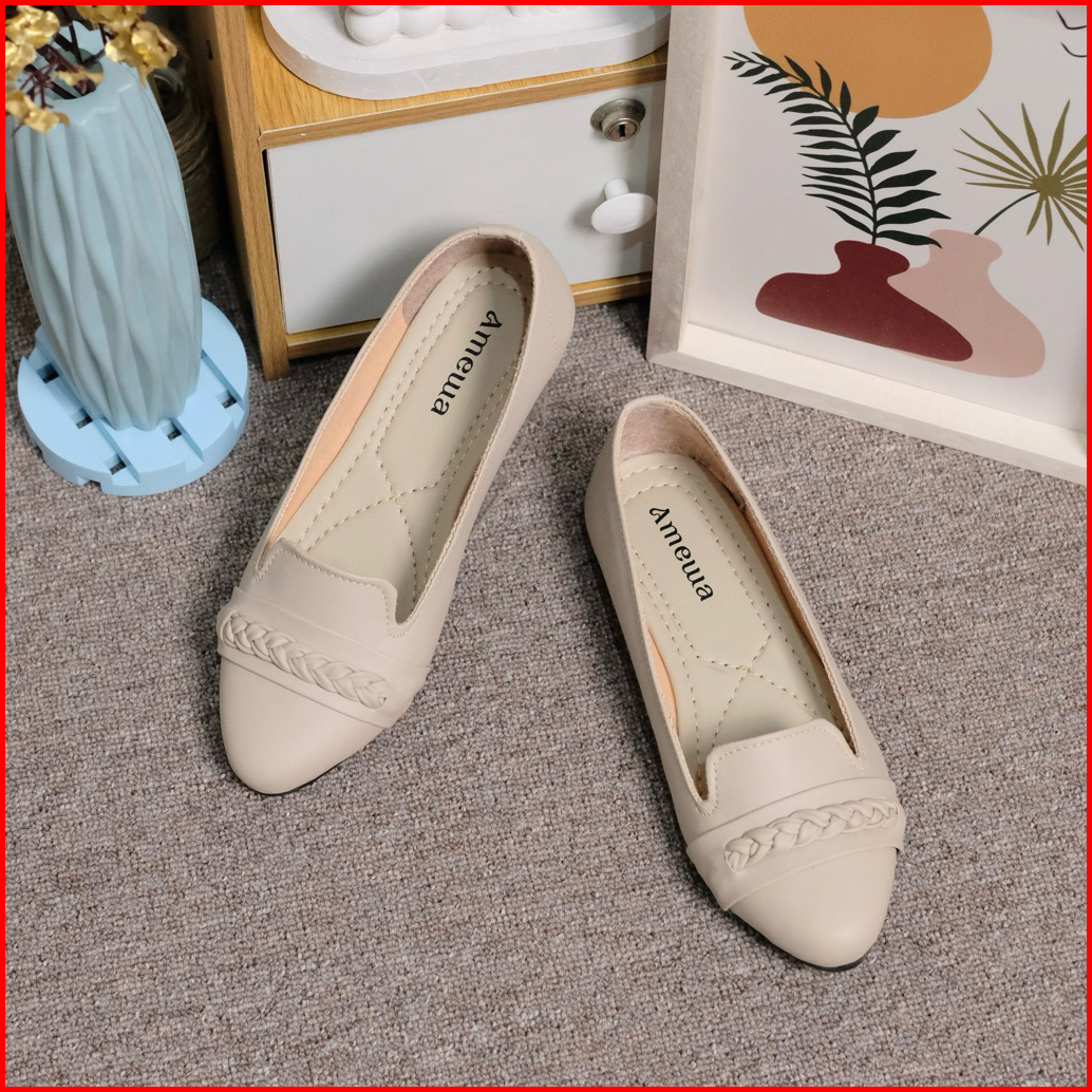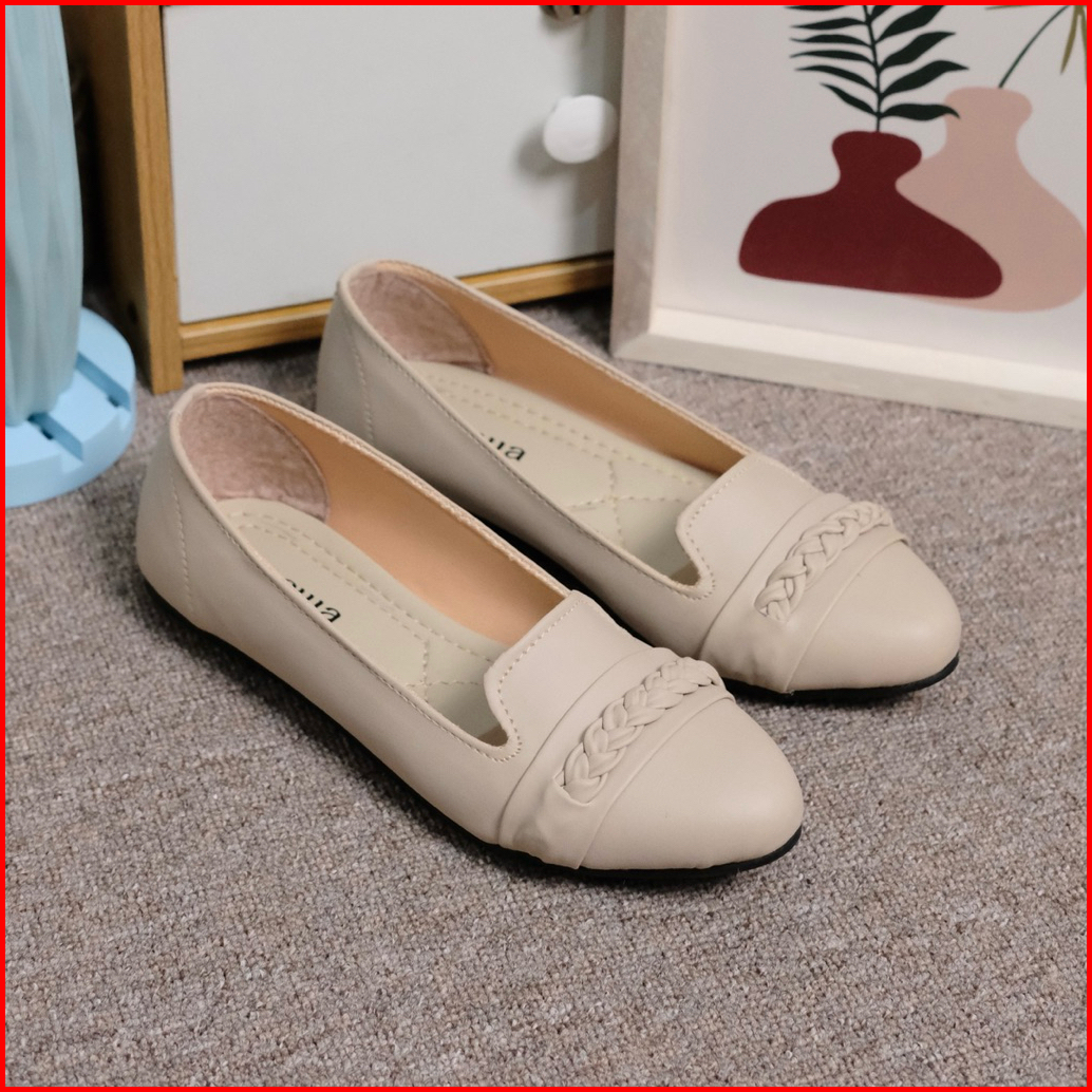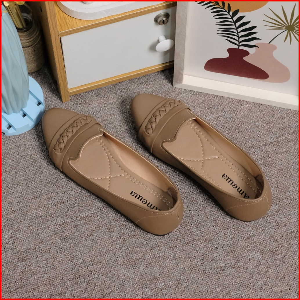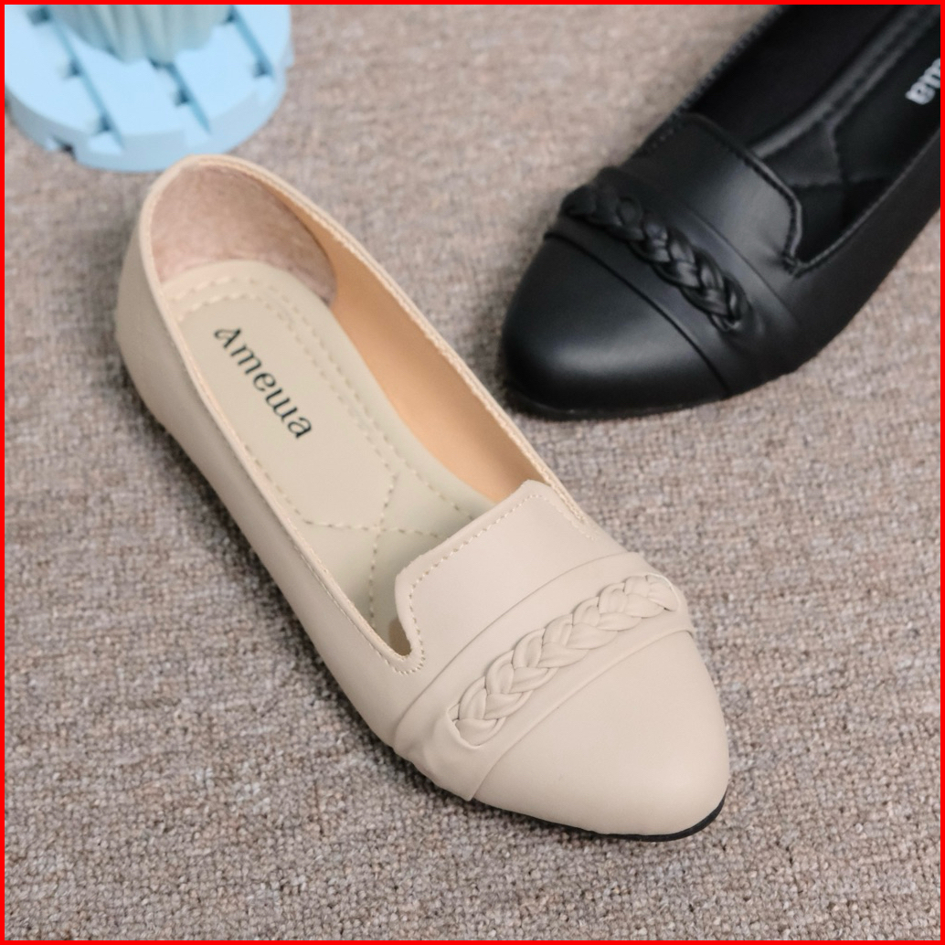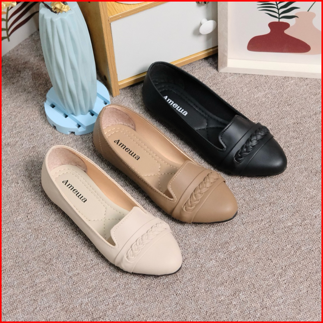 Amewa Herlin Sepatu Flat Wanita Kekinian Platform Motif Lipat Hitam