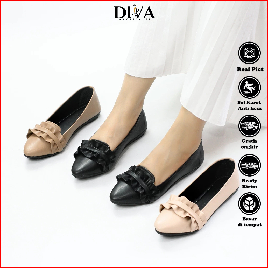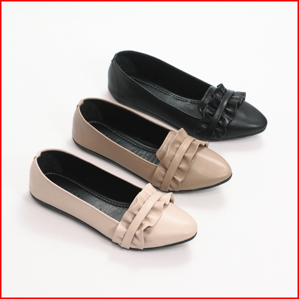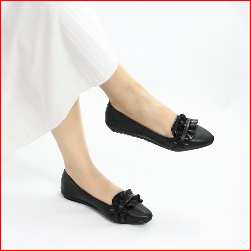 Sepatu Flatshoes Teplek Wanita Hitam Kerja Elegan Murah Kekinian Korean Style Lt 10
