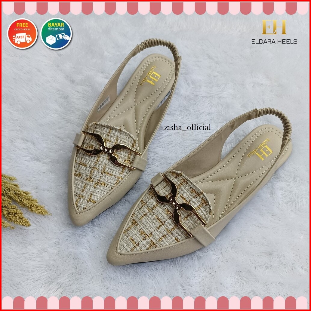 Flatshoes Wanita Eldara Ayumi Cream Sol Karet Anti Slip