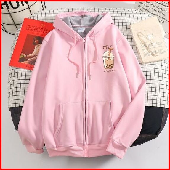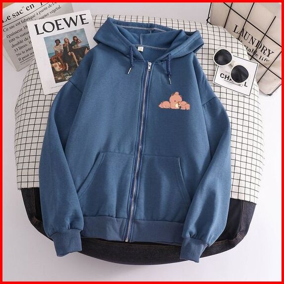 Oversize Hoodie Motif Bear Zipper Jaket Switer Wanita Korea Jumper Hoodie Bear