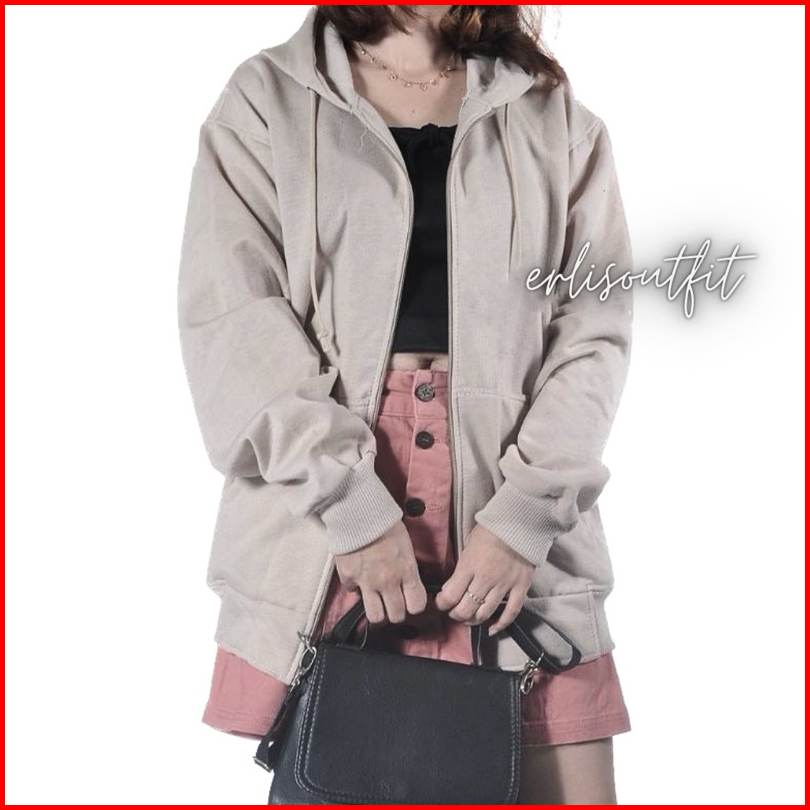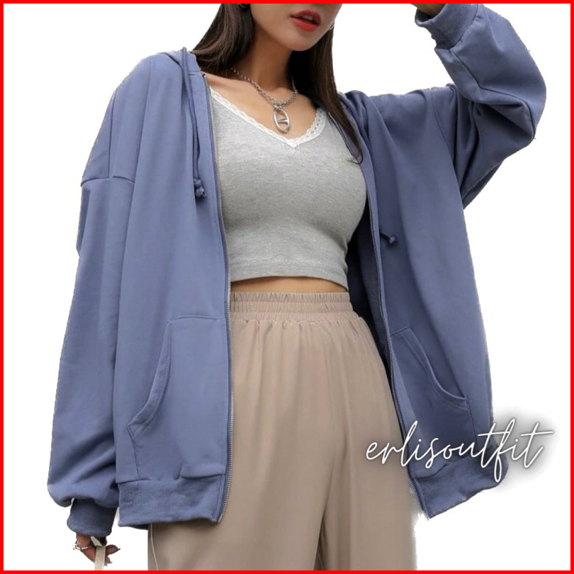 Jaket Hoodie Polos Resleting Denim Zipper Wanita Pria Distro Oversize Carla