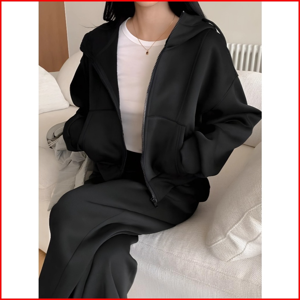 Swetrend.id Jaket Hoodie Zipper Polos Size M-xxl Pria Wanita