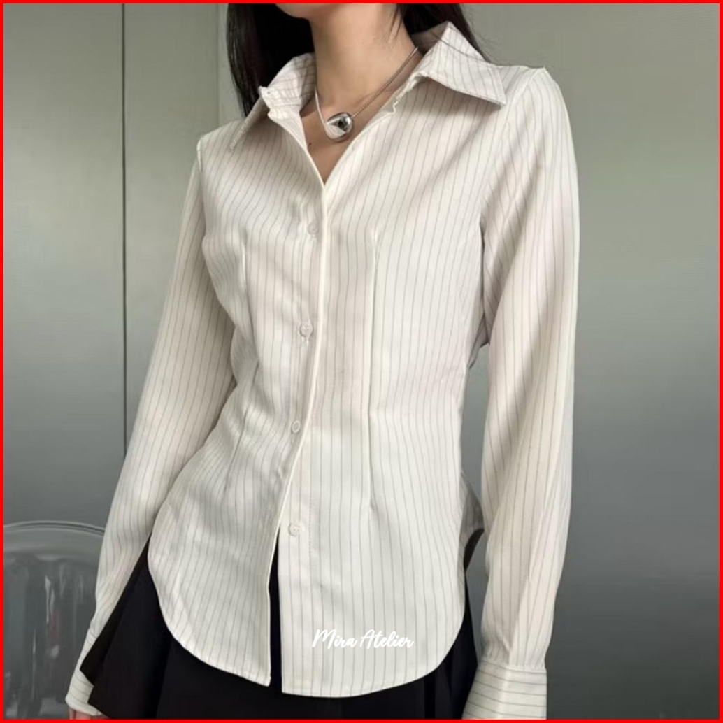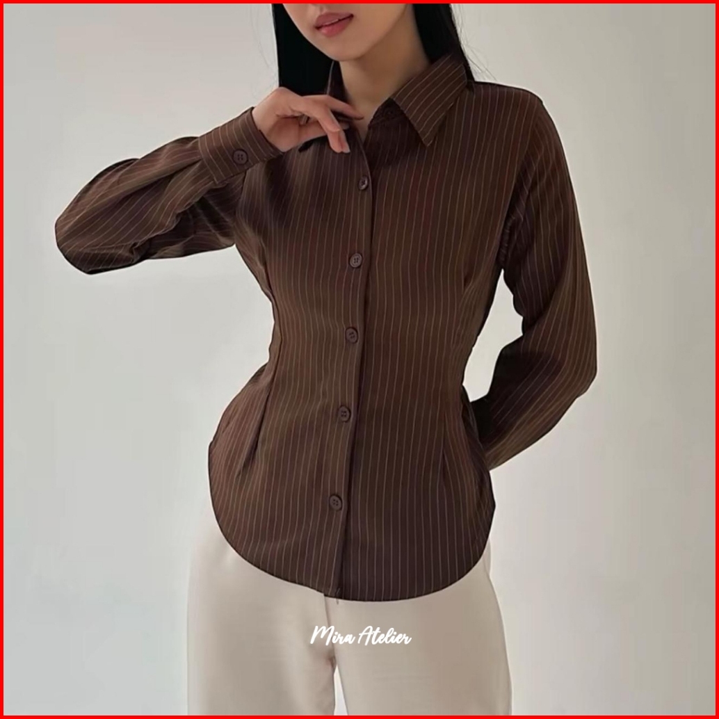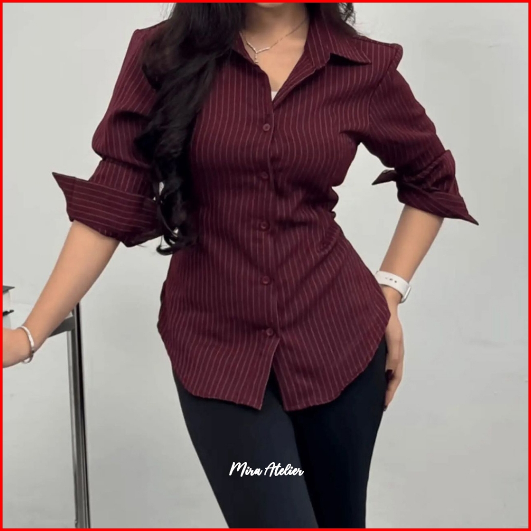 Kemeja Luna Stripe Fitted Body Wanita Elton - Atasan Wanita Fit Body Kerja Salur Wispie Garis Garis