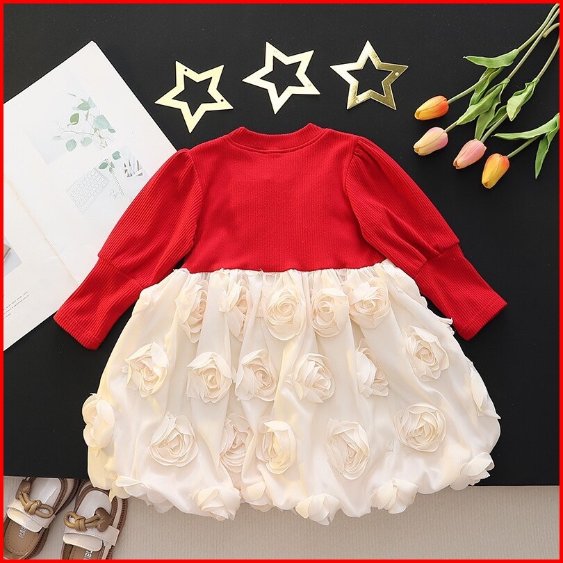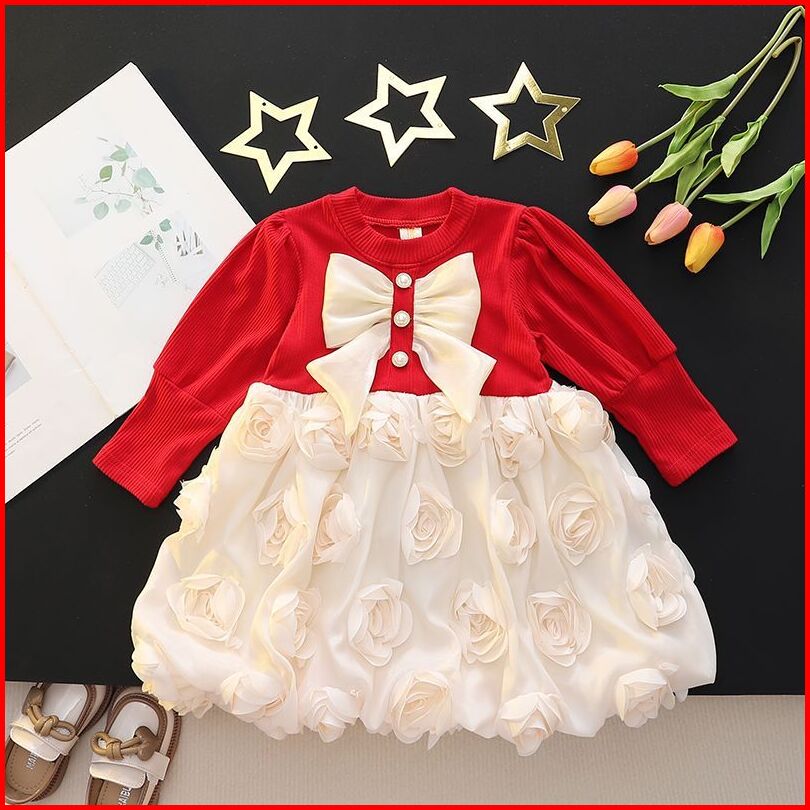 Rainbow Baju Dress Anak Perempuan 1-4 Tahun Rok Kuntum Mawar Baru Baju Gaun Anak Perempuan Premium