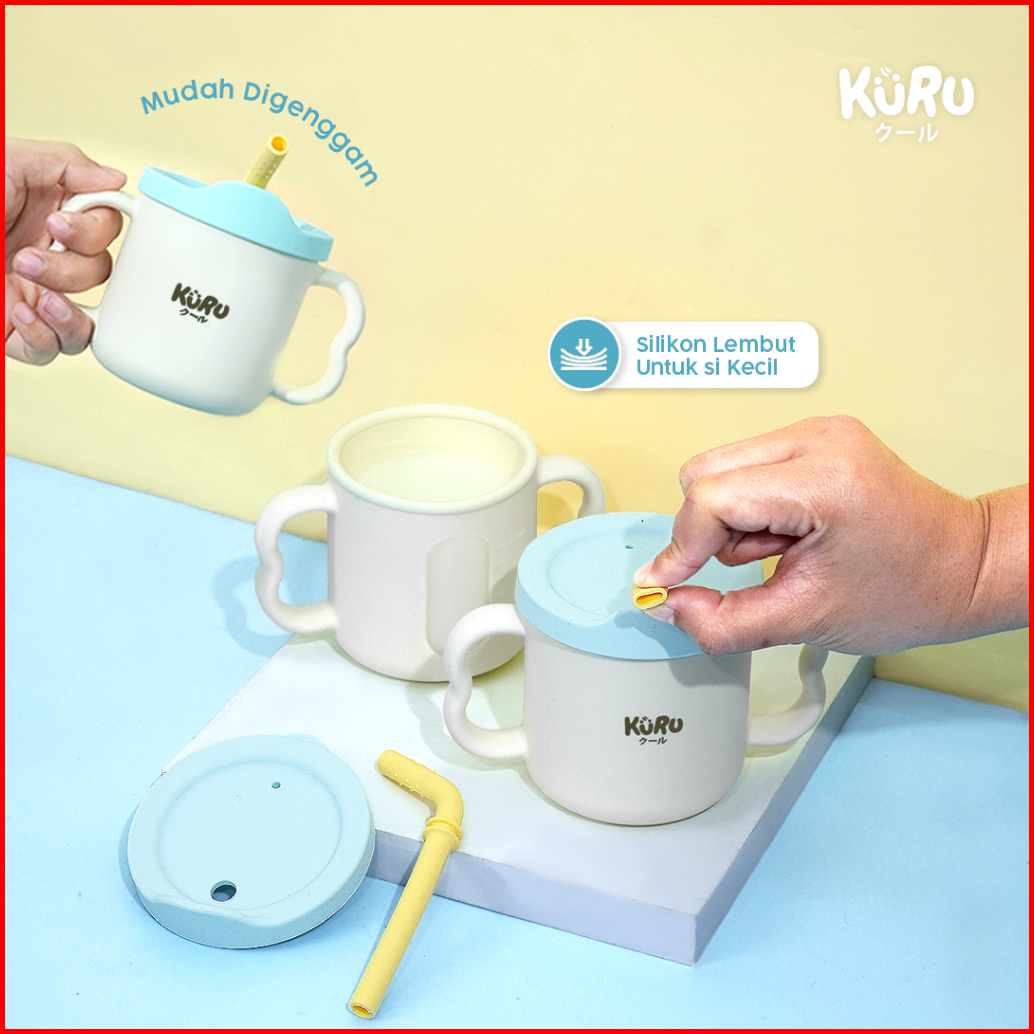 Kuru Sc50 Baby Silicone Training Cup With Straw Gelas Latihan Anak Bayi Anti Tumpah