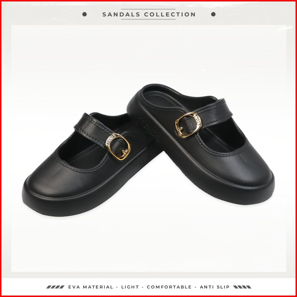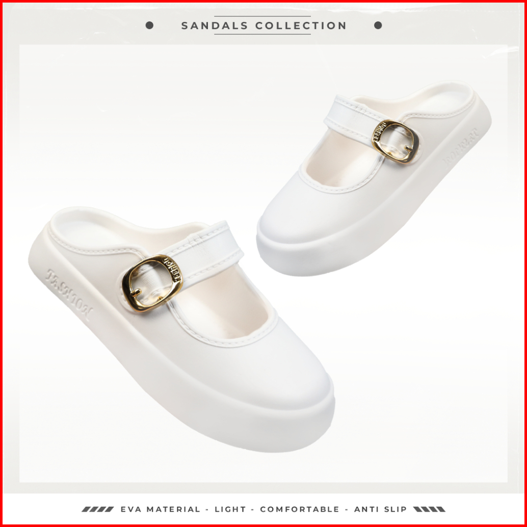 Sandal Wanita Casual Kekinian Modis 262m-2 Dengan Pengait Gesper Desain Polos Elegan Cocok Untuk Daily