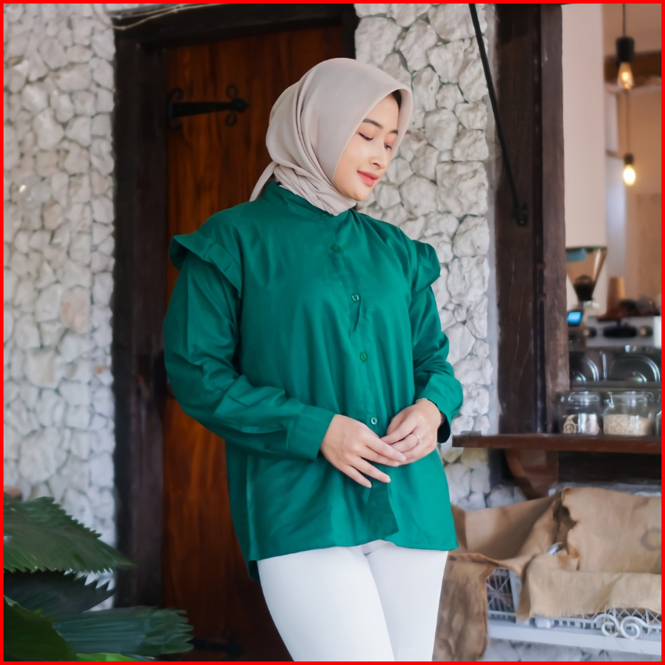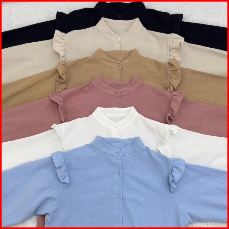 Yurim Blouse Ruffle - Atasan Wanita - Kemeja Linen Basic Lengan Panjang
