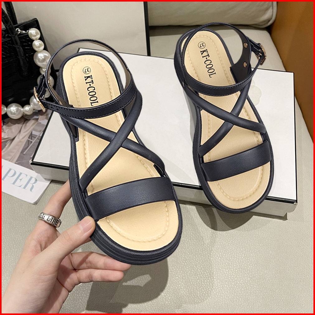 Sandal Wanita Sandal Wedges Model Tali Silang Hak Tinggi Gaya Fuji Kekinian Bahan Premium Uk 36-40