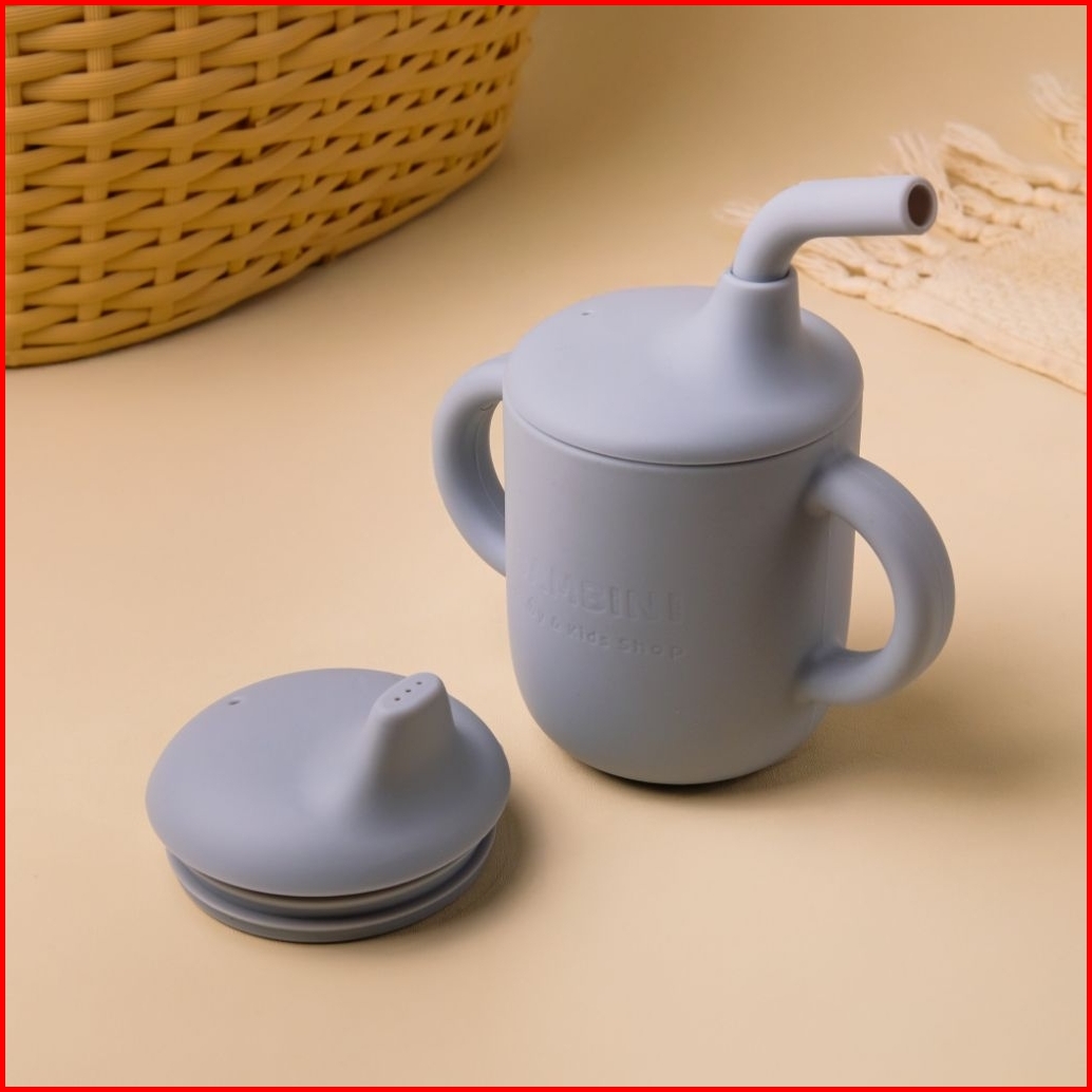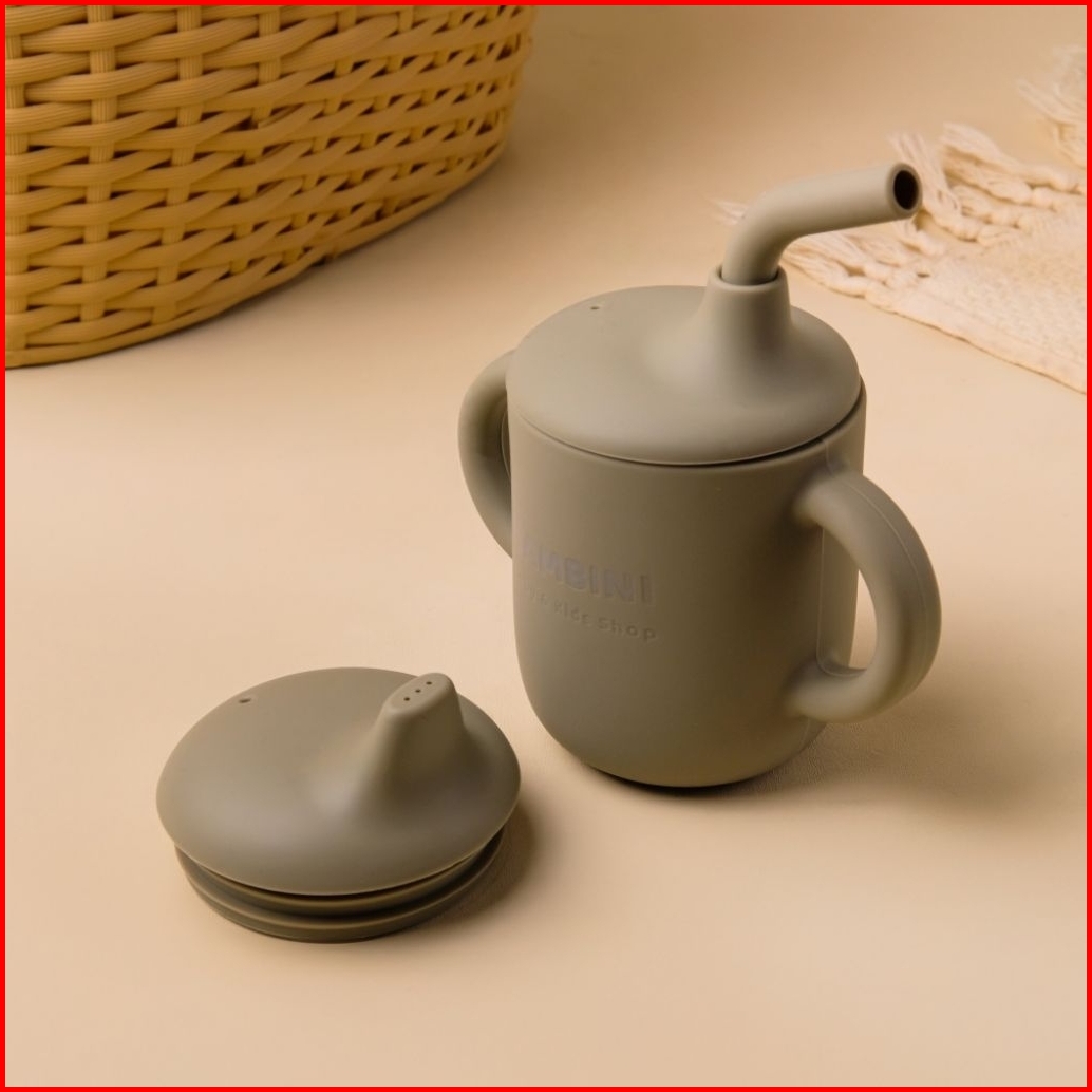 Bambini - Premium 2 In 1 Silicone Sippy Cup Gelas Minum Anak Training Cup Gelas Dan Sedotan Anak