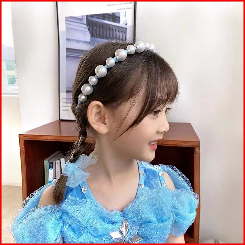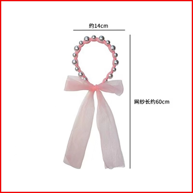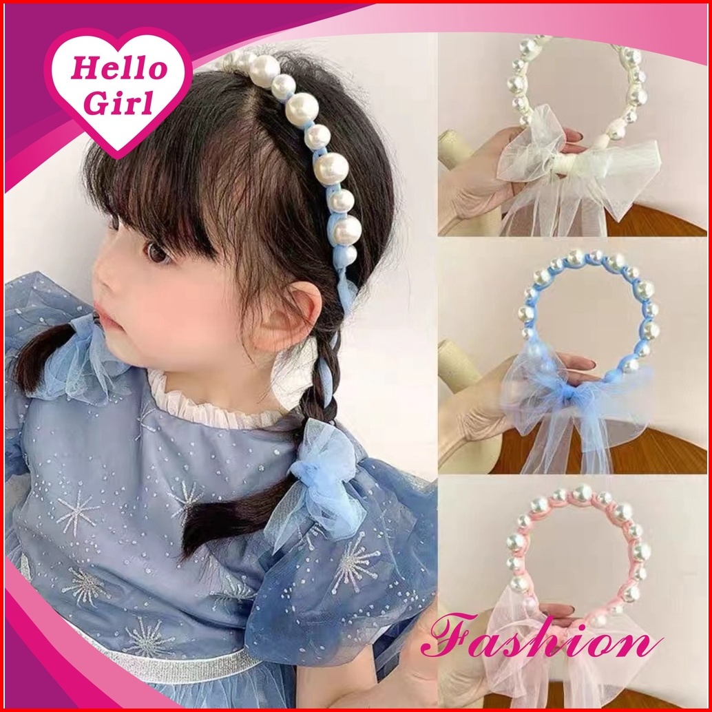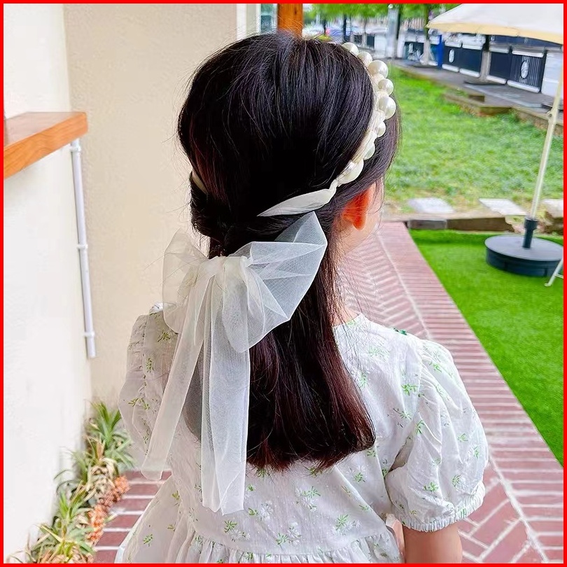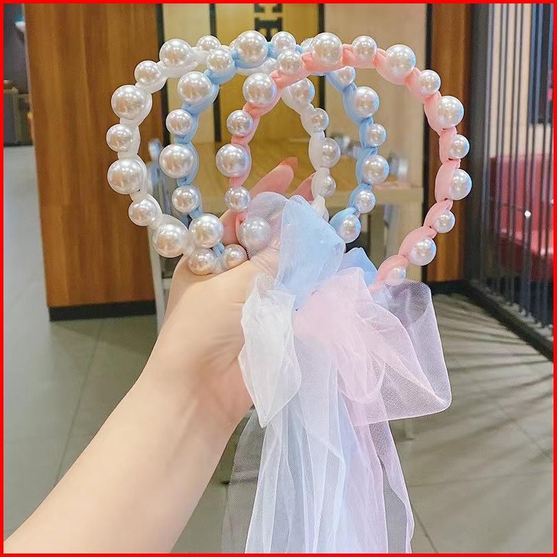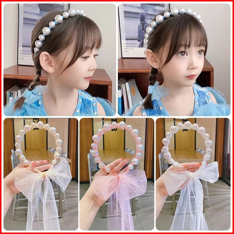 Bando Bandana Mutiara Pita Tulle Panjang Zamzam B11 Bisa Diikat Gaya Korea Bando Anak Import
