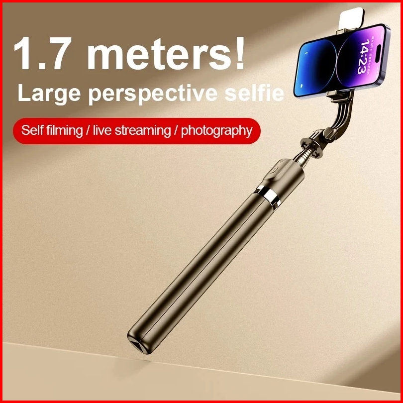 Tongsis Tripod 1.7m Bluetooth Remote 4in1 Selfie Stick 170cm Led Light