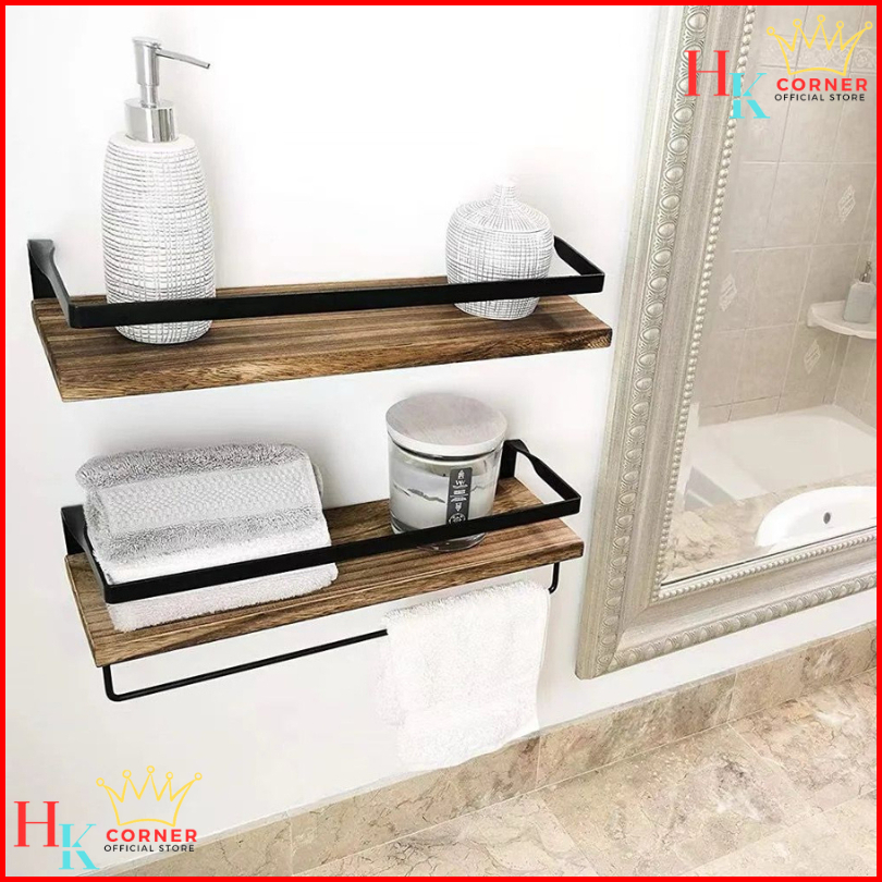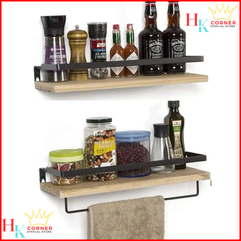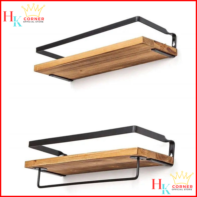 Hk Rak Gantung Minimalis Rak Dinding Dapur Kamar Mandi Rak Kayu Besi Serbaguna