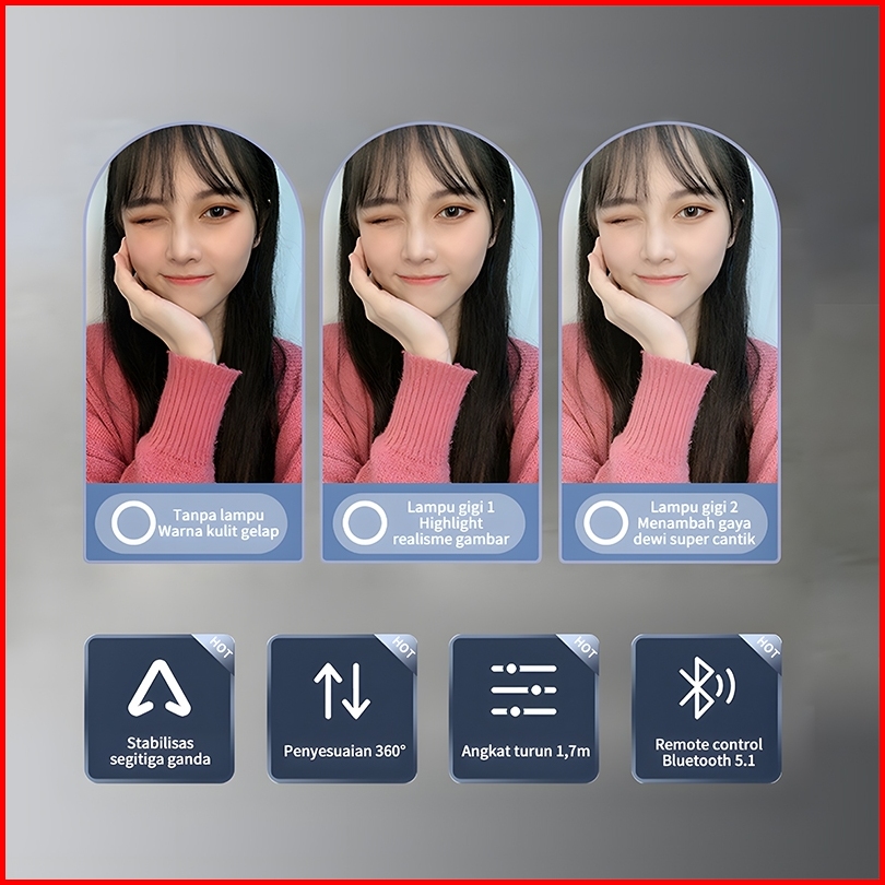 Lentiven Tongsis Selfie Tripod Bluetooth 4 In 1 Dengan Remote Control Selfie Stick Portable Flexible Lampu Led Selfie St