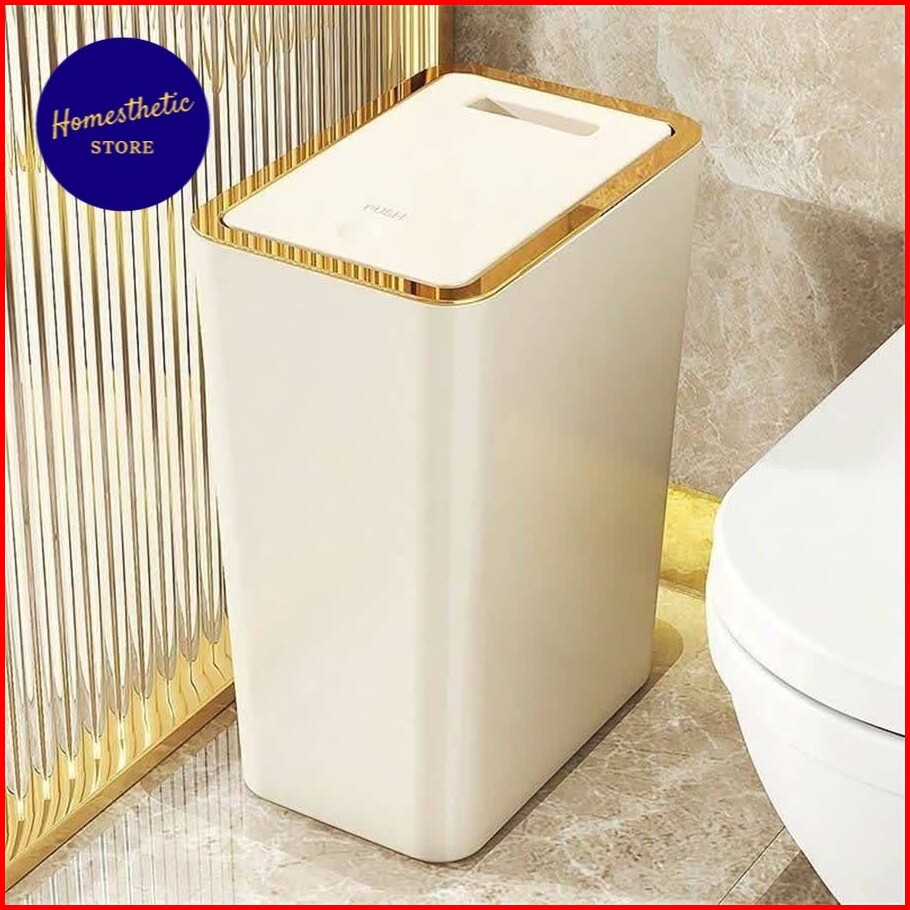 Tempat Sampah Rumah Dapur Kamar Mandi Pressing Tekan Press Trash Bin Smooth Opening Estetik Minimalist Aesthetic Elegan